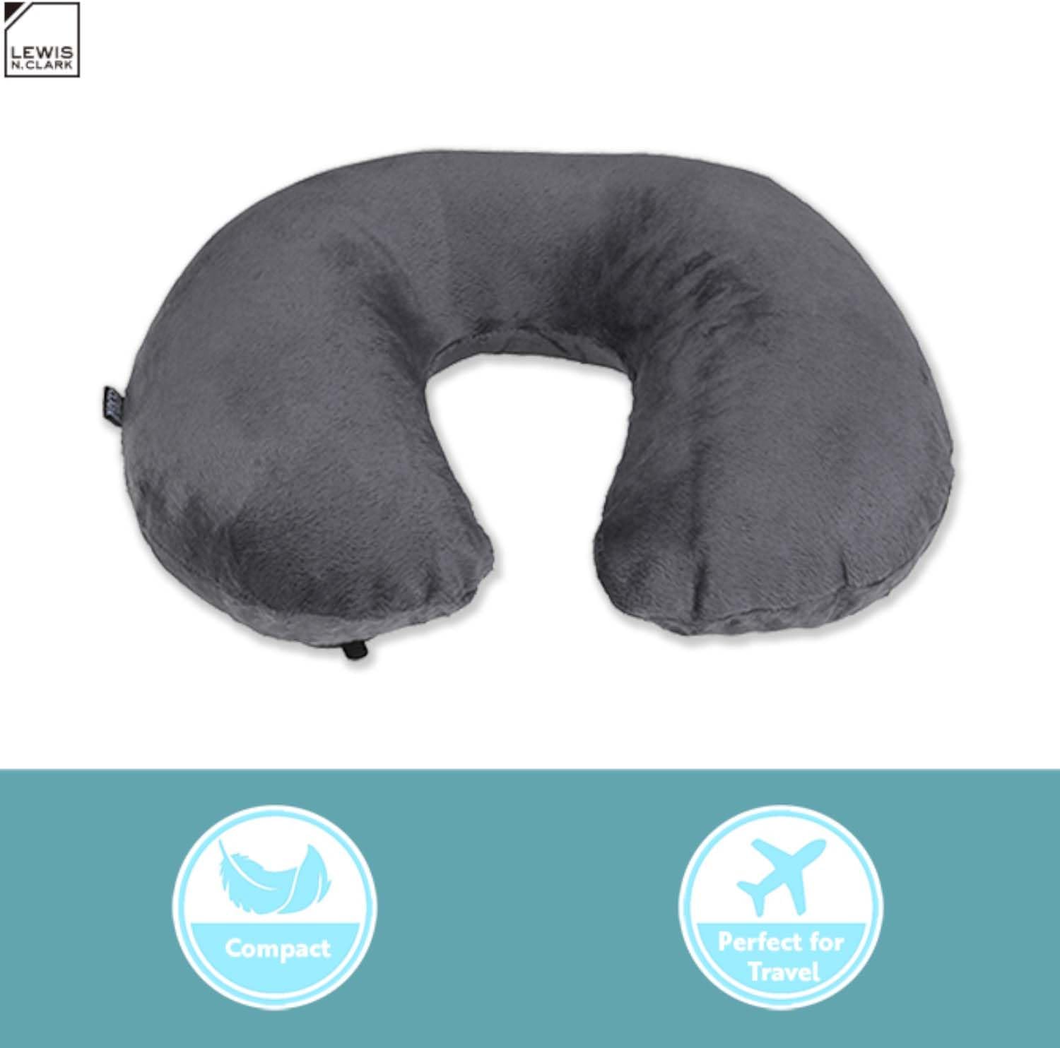 Lewis N. Clark Compact Portable Adjustable and Inflatable Cervical Neck Pillow for Travel, Gray, One Size