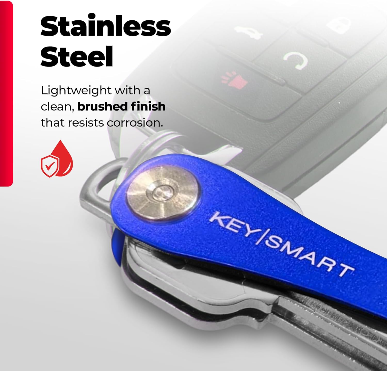 KEYSMART Key Holder for Keychain - Compact Key Organizer for Key Chain, Minimalist Clutter-Free EDC Keychains Key Ring, Blue, 14 Keys