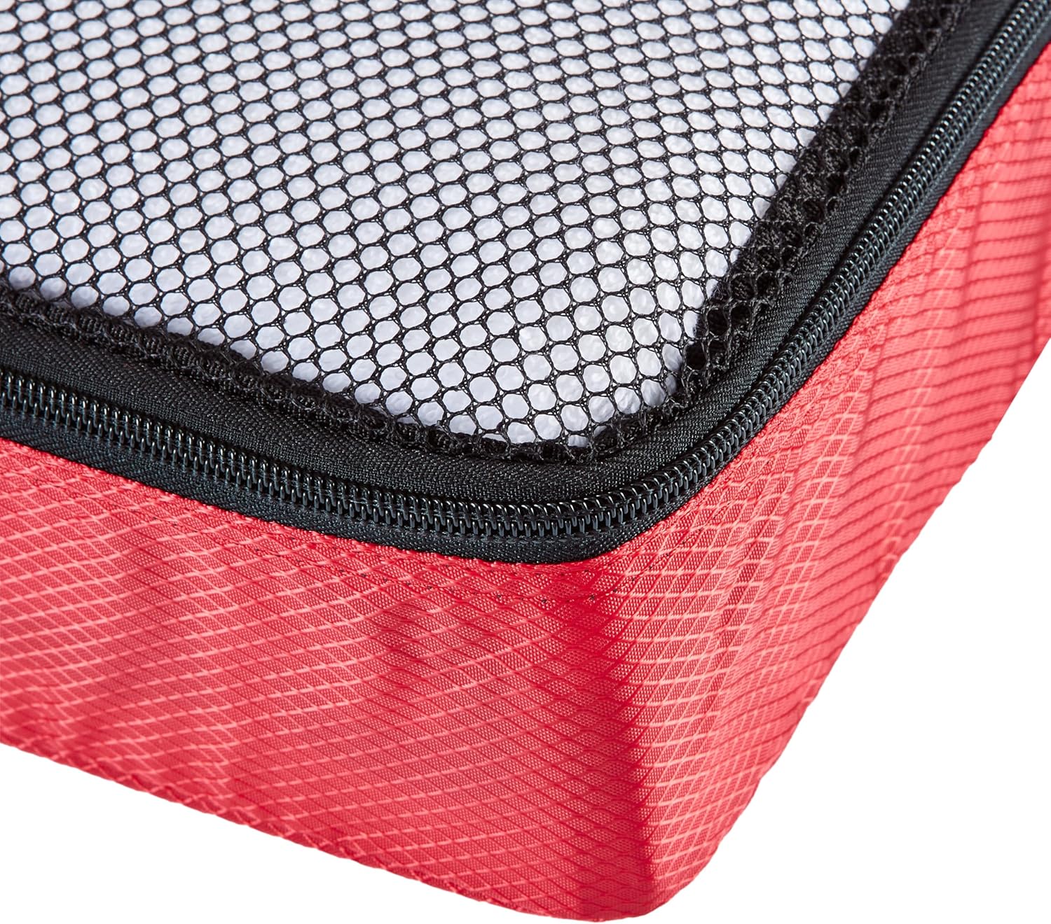 Amazon Basics Medium Packing Cubes for Travel, Packing Organizers, 4-Piece-Set With Double Zipper Pulls and Mesh Top Panel, 100% Durable Polyester, Red, 13.8"L x 9.8"W x 3"H