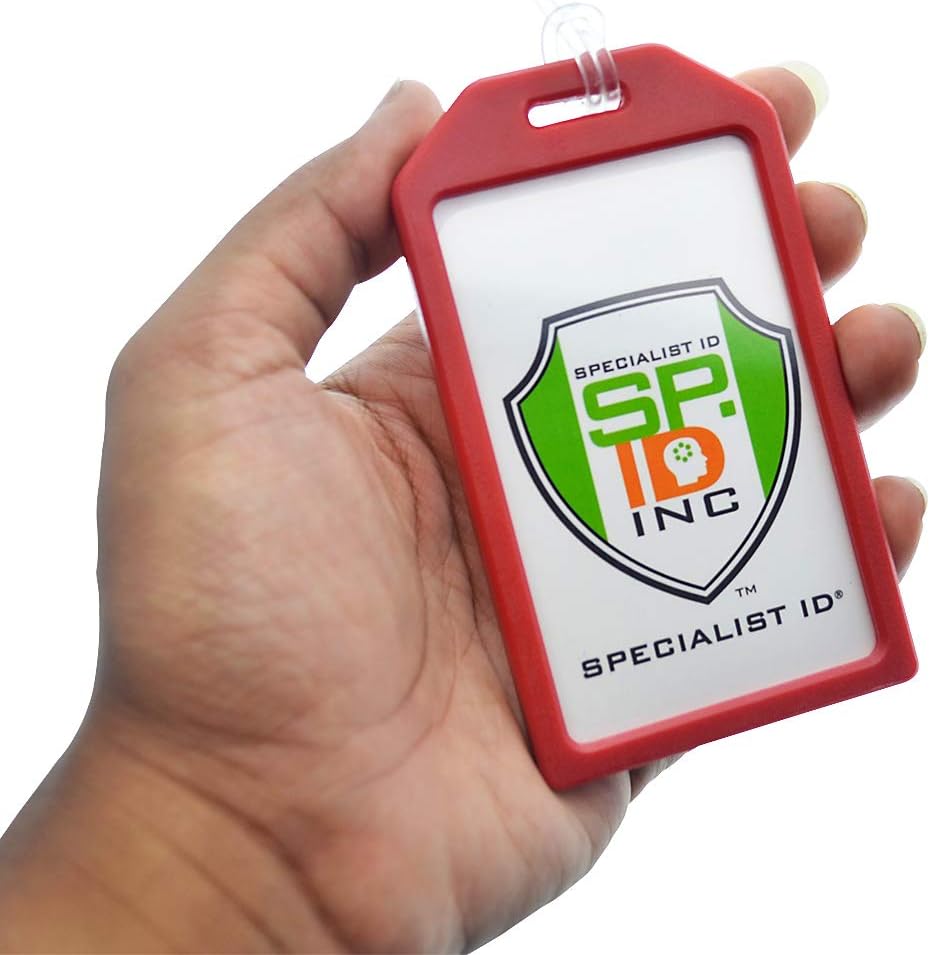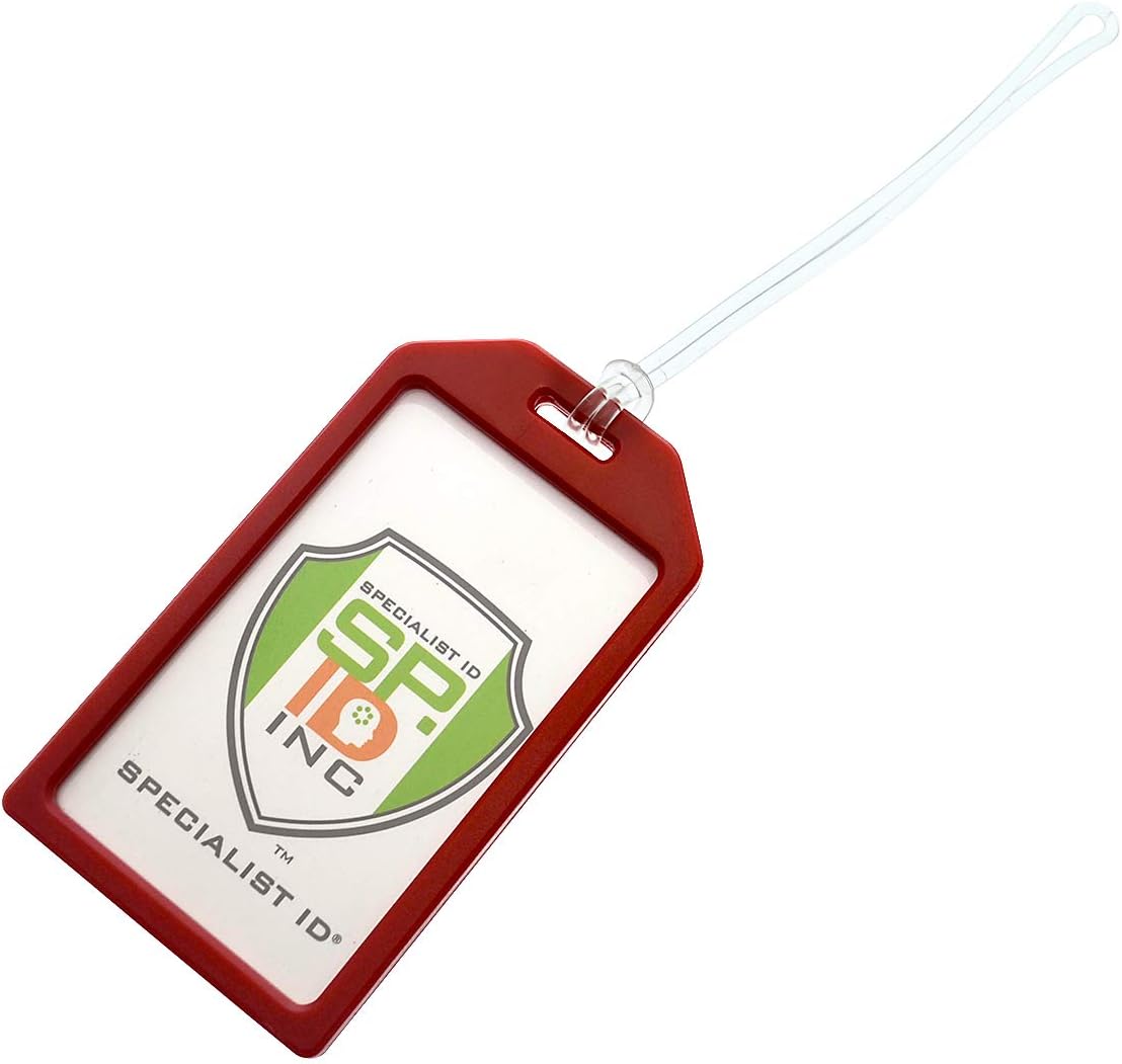 5 Pack - Premium Rigid Airline Luggage Tag Holders with 6" Worm Loops - Heavy Duty Hard Plastic -Suitcase ID Tag Identifiers with Business Card Insert Window by Specialist ID (Red)