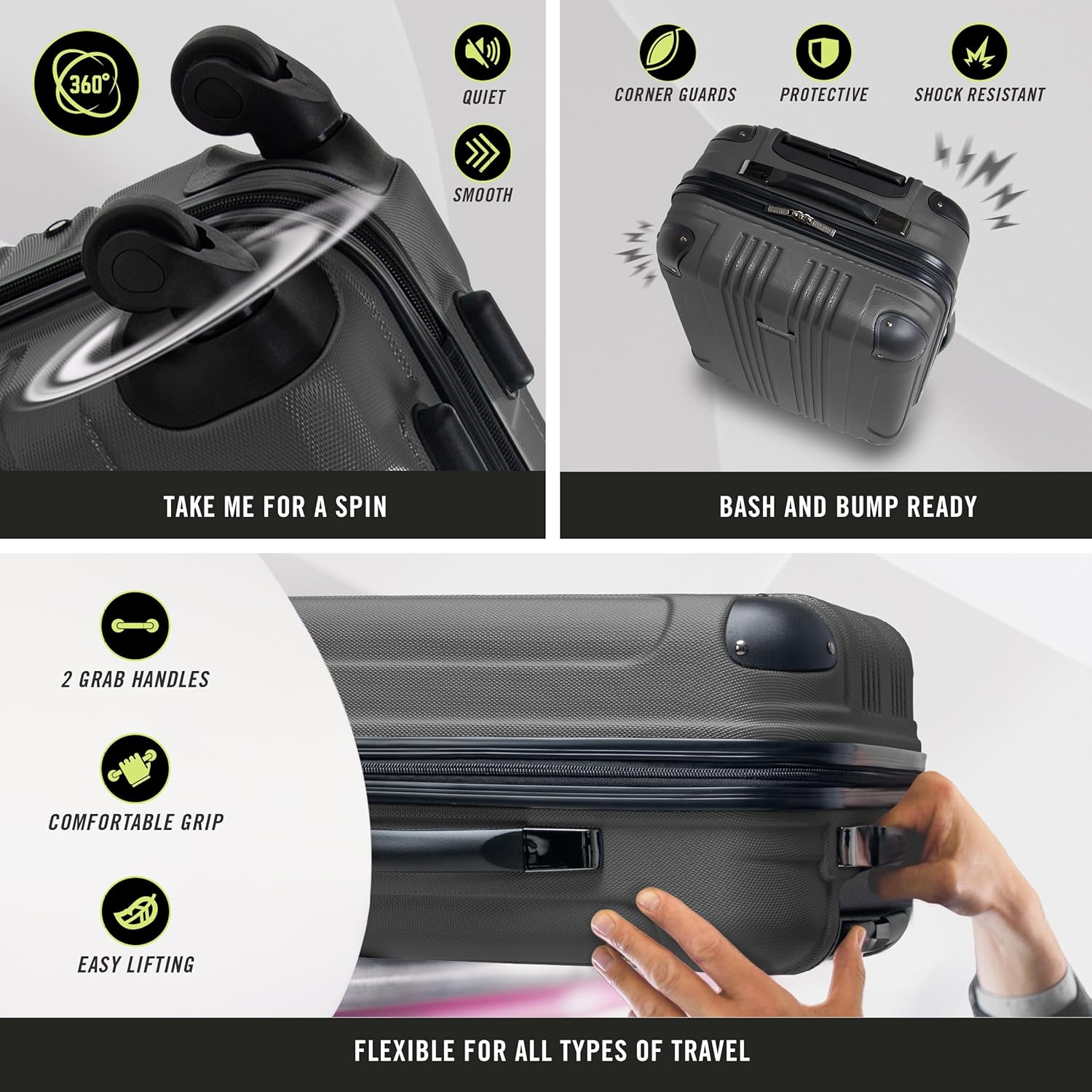 Kenneth Cole REACTION Out of Bounds Lightweight Hardshell 4-Wheel Spinner Luggage, Charcoal, 3-Piece Set (20", 24", & 28")