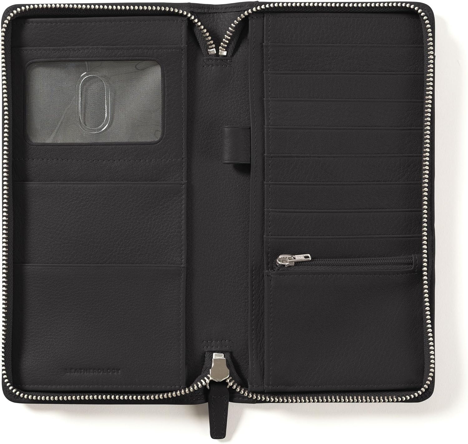 Leatherology RFID Black Onyx Travel Zip Organizer Wallet, Passport Holder, RFID Available, Full Grain Leather