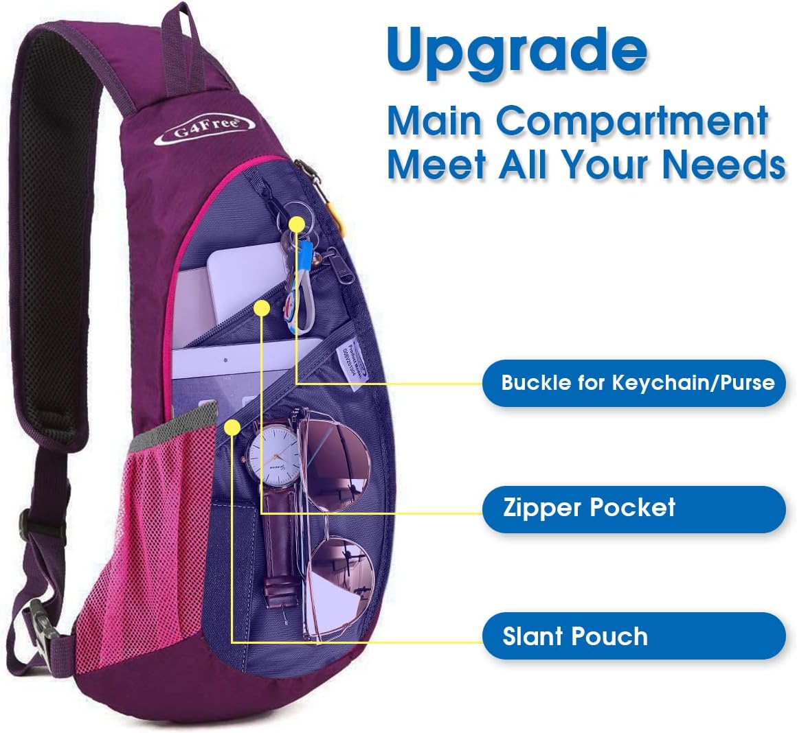 G4Free Sling Bag for Men Women, Small Crossbody Backpack Lightweight Chest Shoulder Bags for Travel, Outdoor and Sports (Rose)