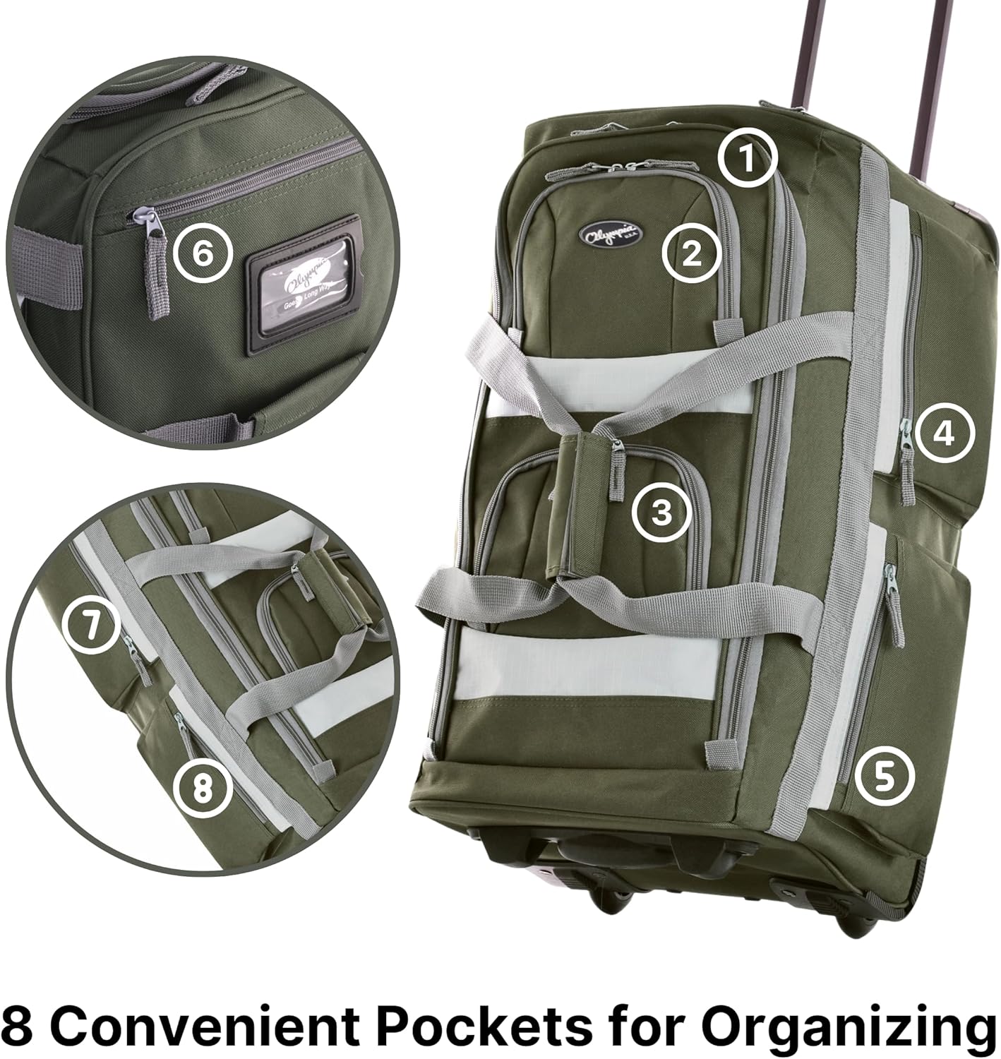 Olympia U.S.A. 29 inch Jumbo Size 8 Pockets Wheeled Rolling Duffel Bag Water Resistant Luggage Lightweight Travel Suitcase with Retractable Handle