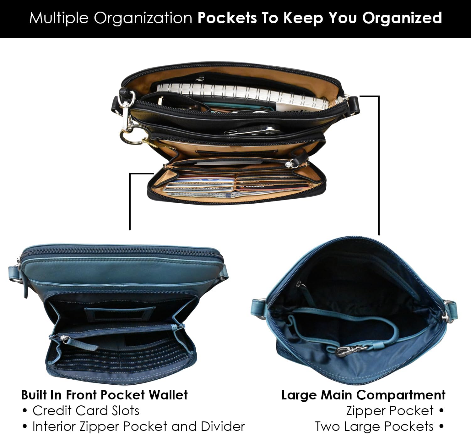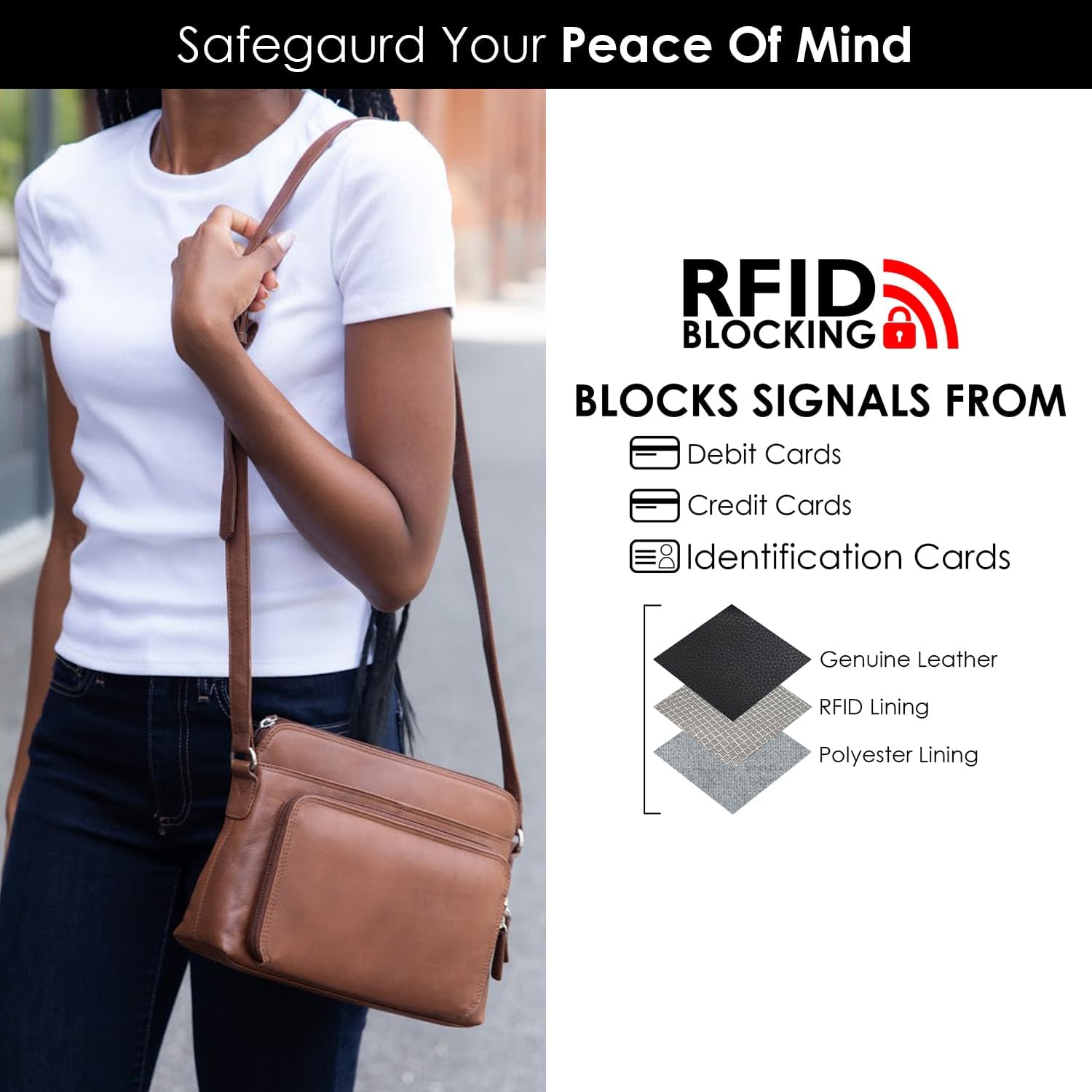 ili New York Genuine Leather Crossbody Bags for Women - Premium RFID Blocking Shoulder Bag Organizer with Adjustable Strap