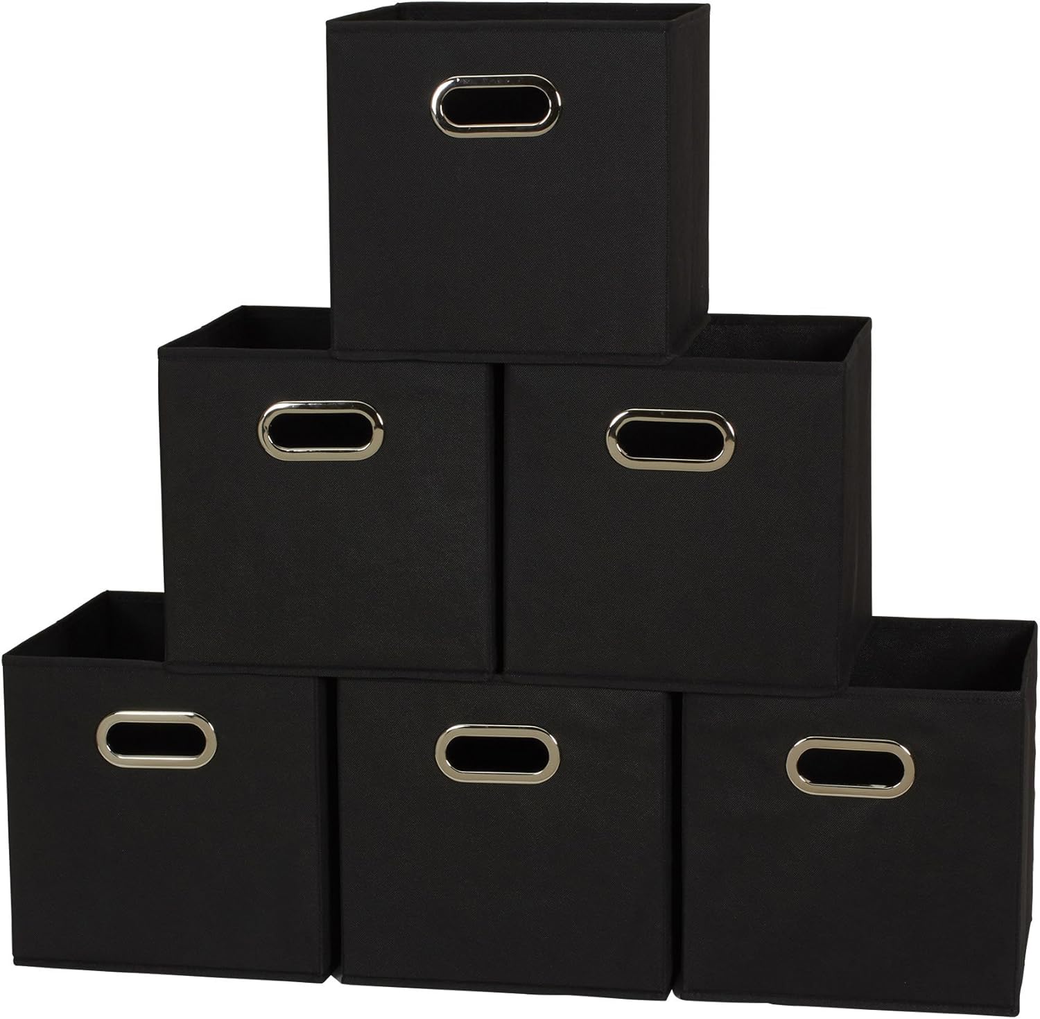 - Six collapsible black cubbie storage baskets for organizing offices, nurseries, and bedrooms