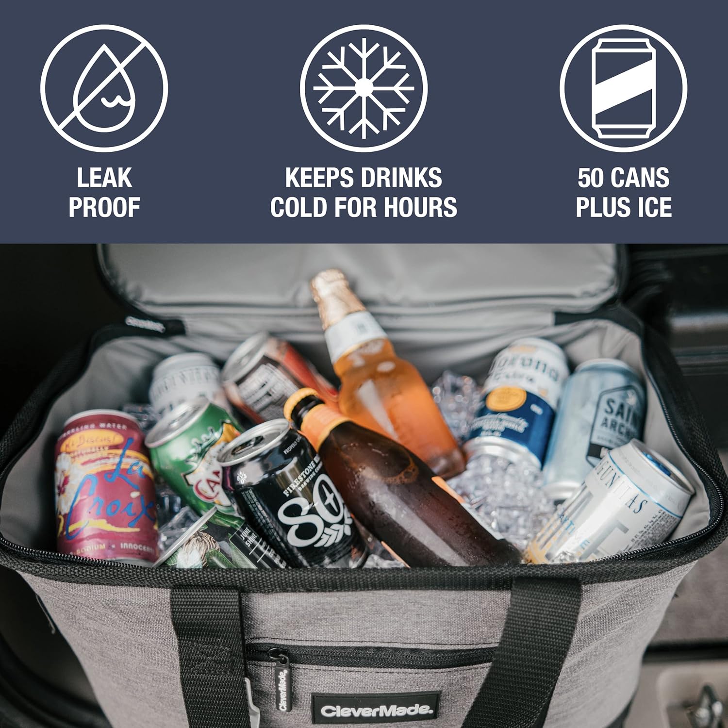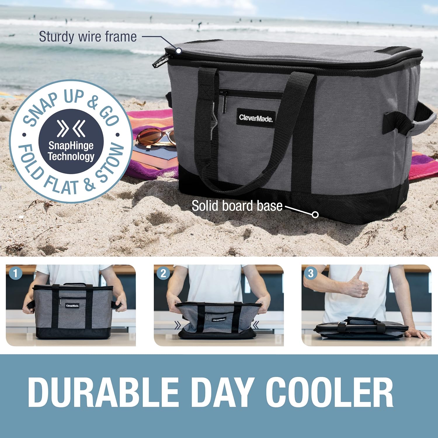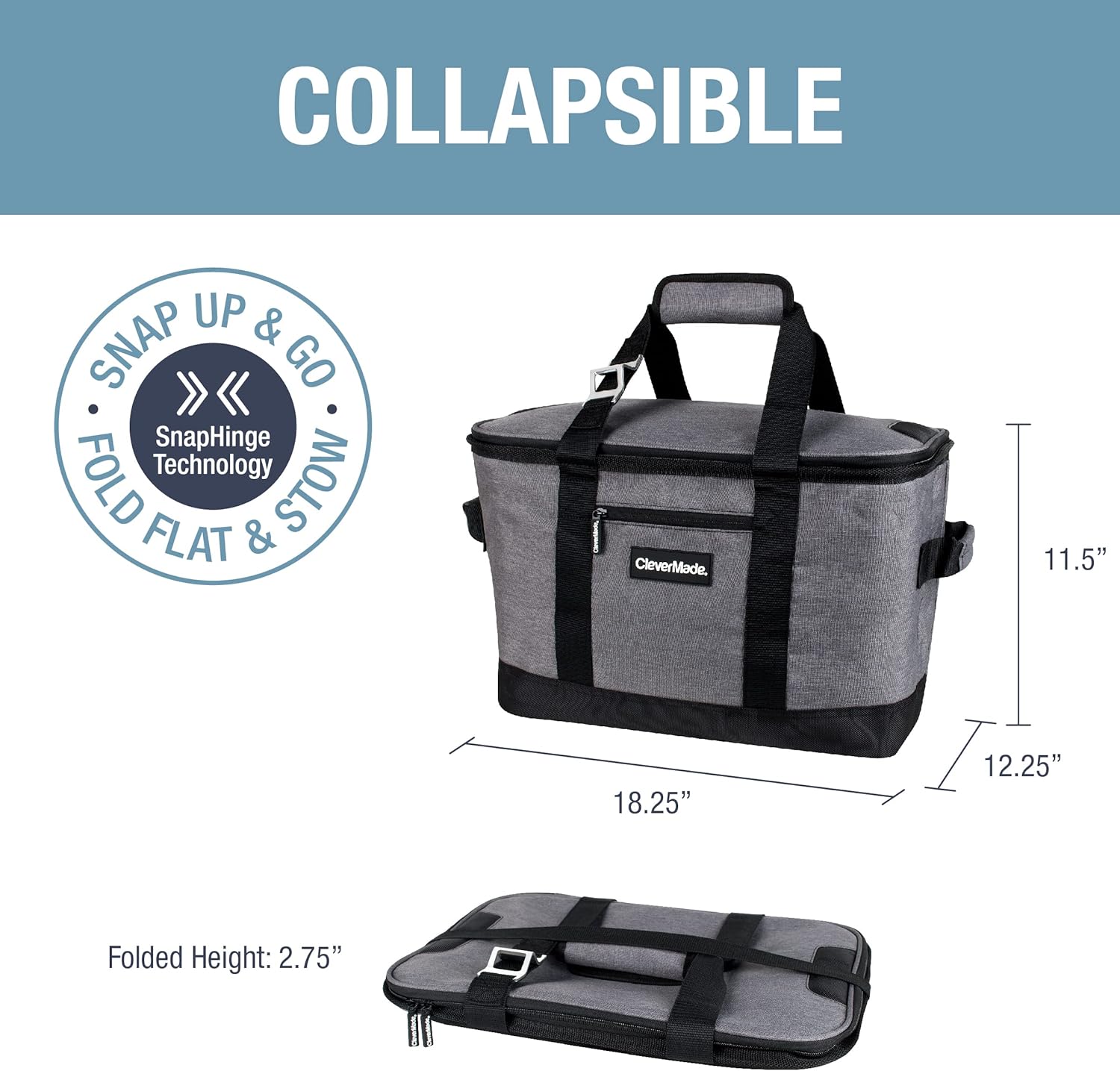 CleverMade Collapsible Insulated Cooler Bag – Leakproof Soft Folding Cooler for Beach, Travel, Car