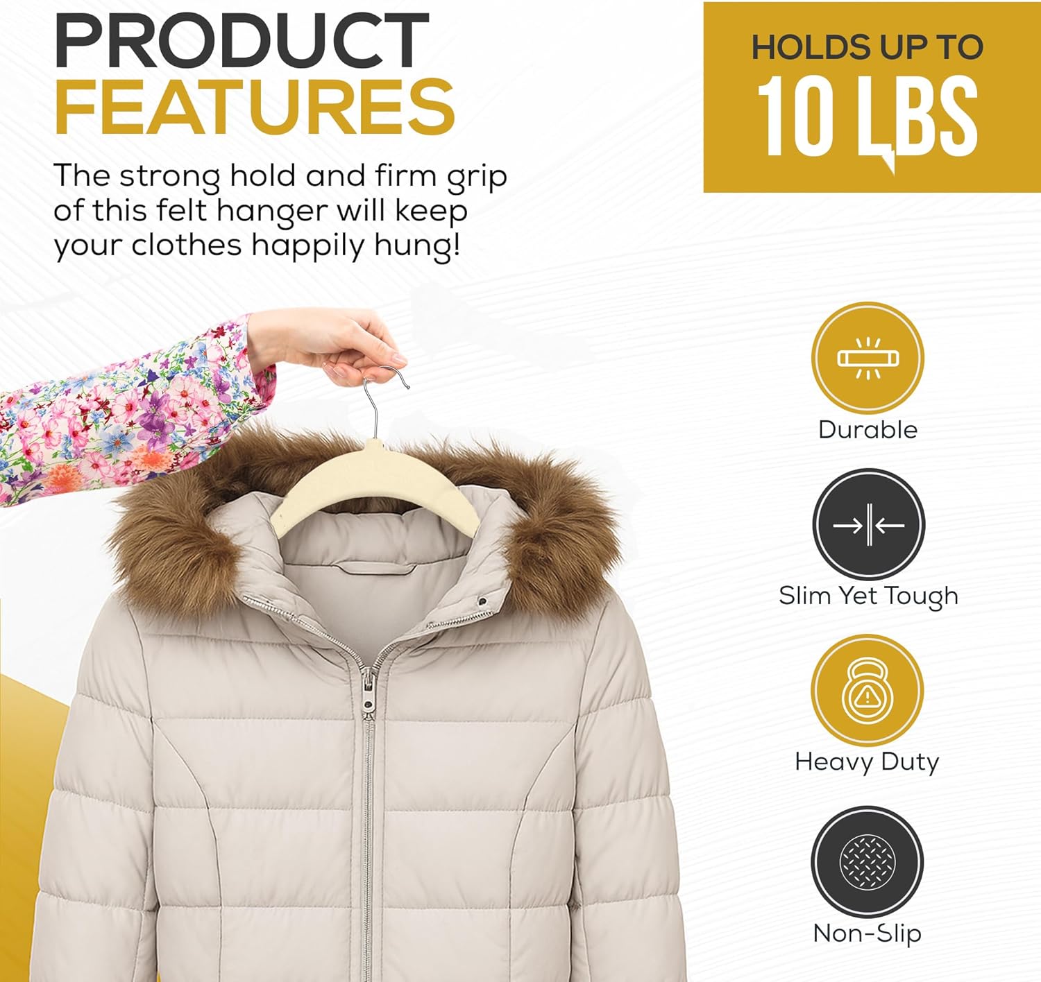 - NON SLIP VELVET HANGERS : Keep your clothes neat and wrinkle free with these non slip velvet hangers. The velvet texture provides a secure grip, preventing your clothes from slipping or falling off the hanger. The notched shoulders and grooves on each hanger makes it perfect for hanging tank tops, dresses, skirts. The high quality velvet material doesn’t shed like other low quality hangers available in market.