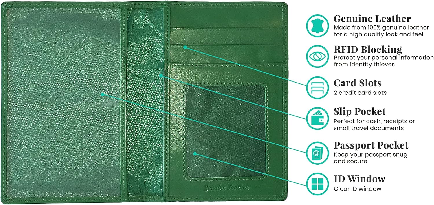 - Style : Rfid Blocking Leather Passport Wallet