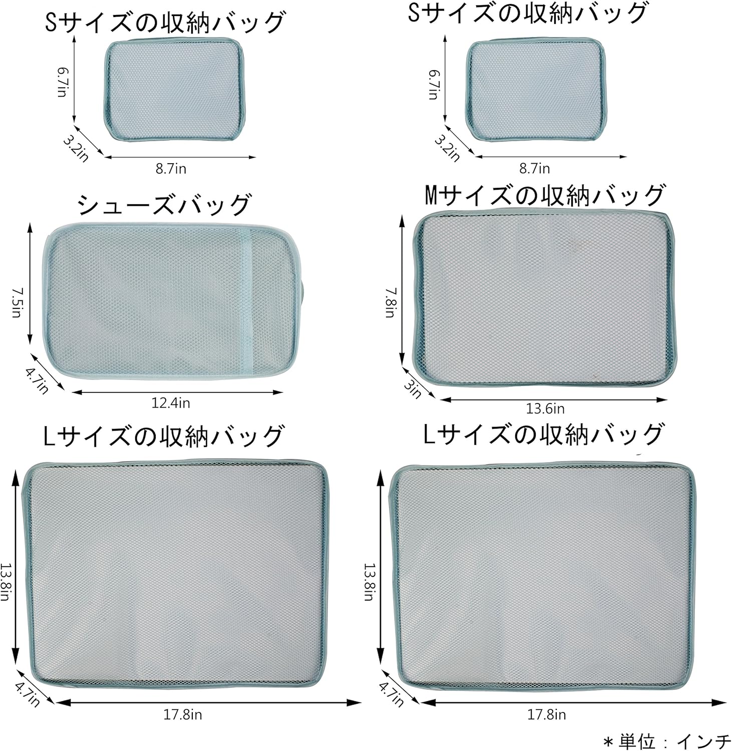 - SIZE: Large/19*13.8*4.7 inches;Medium/13.6*7.8*3 inches;Small/8.7*6.7*3.2 inches;Shoe Bag/12.4*7.5*4.7 inches. WEIGHT:340g. FIT 24/25 inch suitcase. ALL packing bags can be stored into the smallest packing cube when not in use.