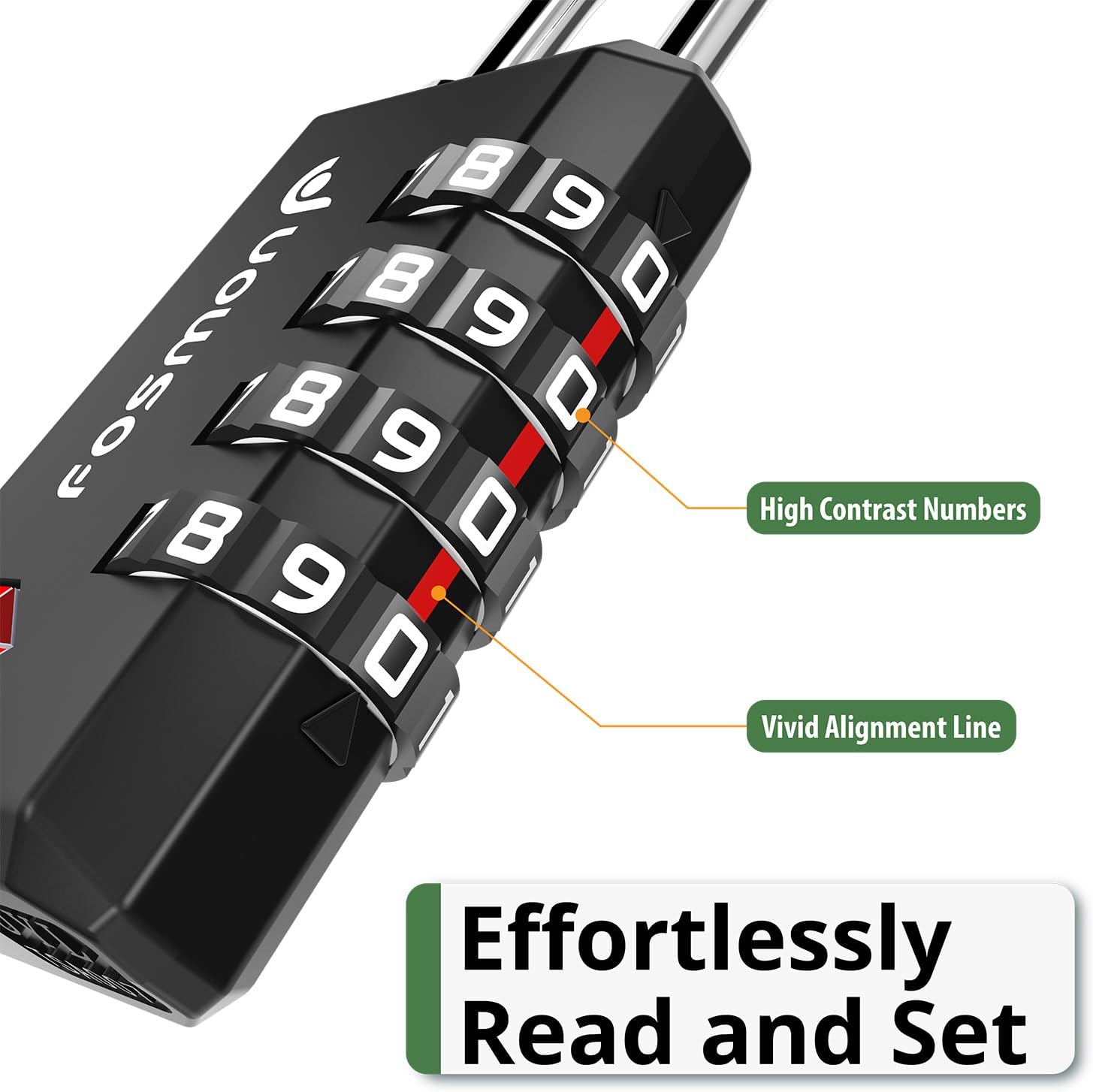 Fosmon TSA Approved Locks for Luggage/Suitcase with Open Alert Indicator (2 Pack), Heavy Duty Gun Safe Lock for Gun Case, 4 Digit Shackle Combination Padlock for Travel, Backpack Zipper, Gym Locker