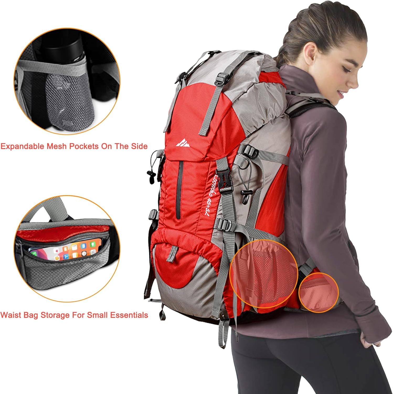 Loowoko 50L Hiking Backpack, Waterproof Camping Essentials Bag with Rain Cover, 45+5 Liter Lightweight Backpacking Back Pack