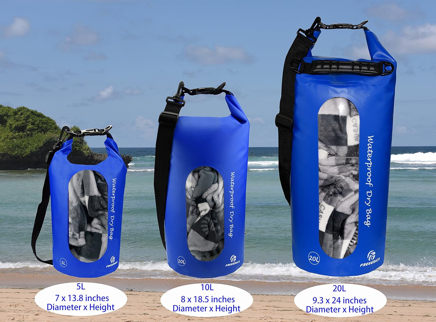 Freegrace Waterproof Dry Bags Set Of 3 Dry Bag With 2 Zip Lock Seals & Detachable Shoulder Strap, Waist Pouch & Phone Case - Can Be Submerged Into Water - For Swimming (Navy Blue(Window), 10L)