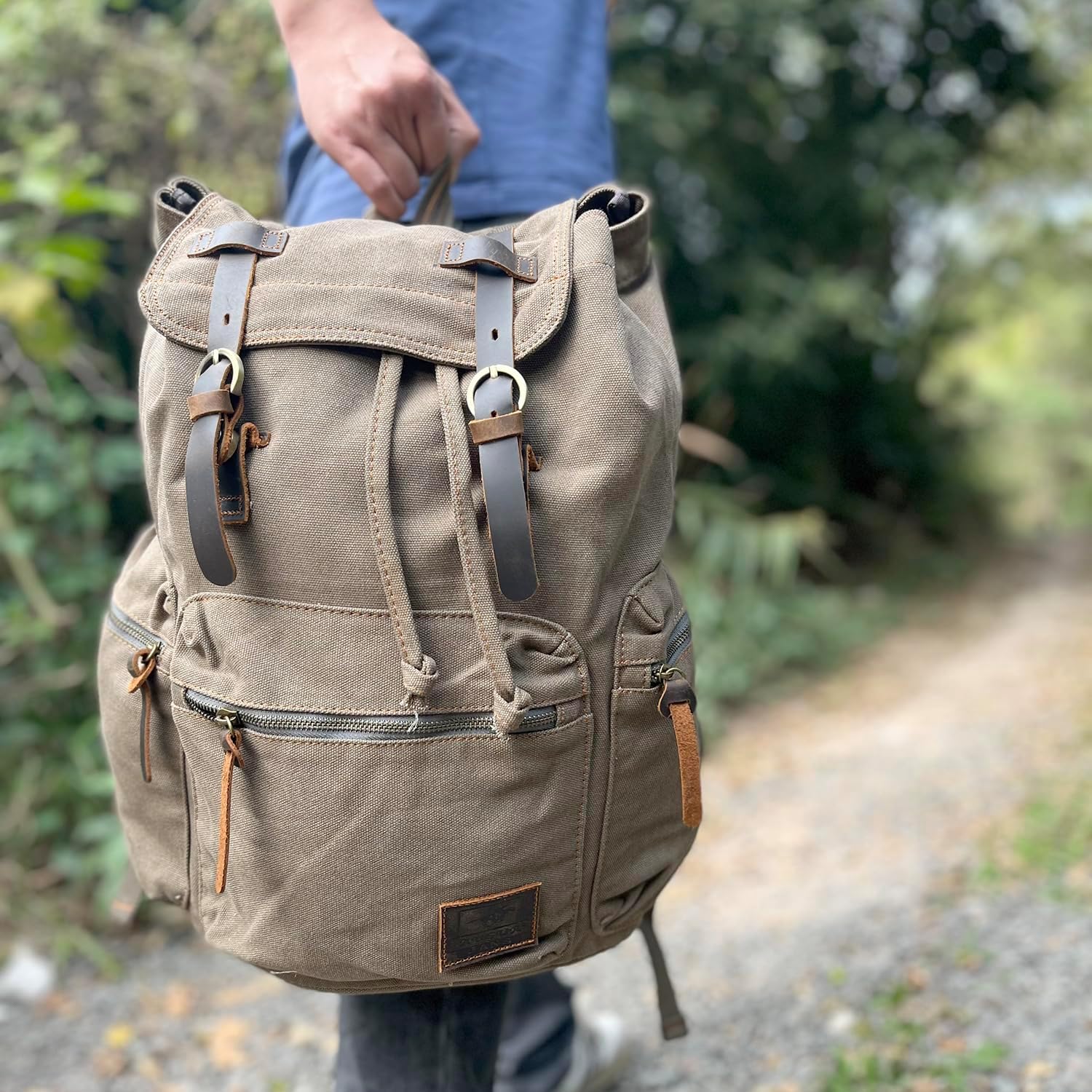 • MULTIPURPOSE: A great Rucksack for Hiking, camping, traveling, shopping, outdoor activities, or take it to work. High density canvas backpack, rucksack, vintage backapck for man, woman.Age rating: 3+ years