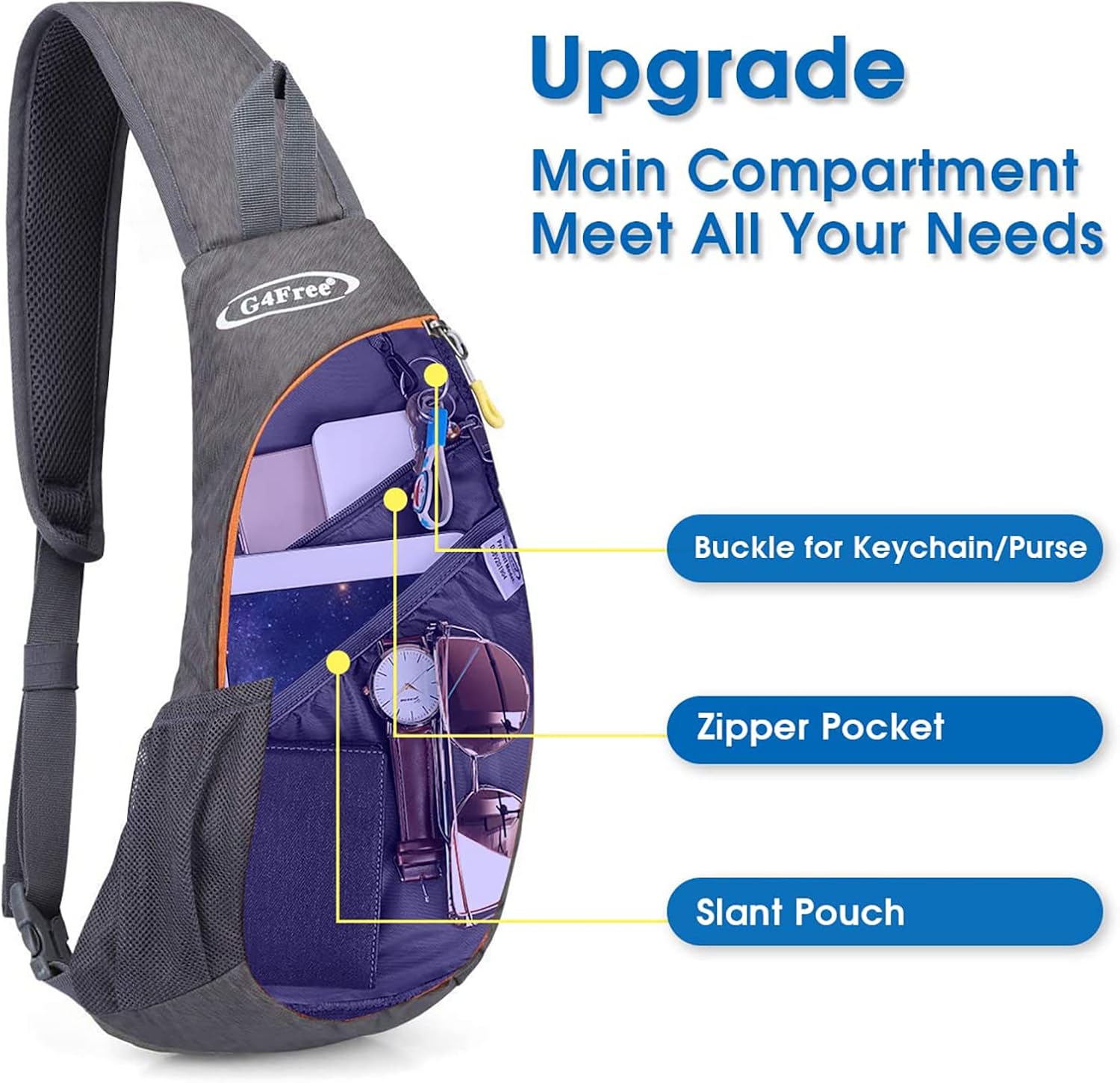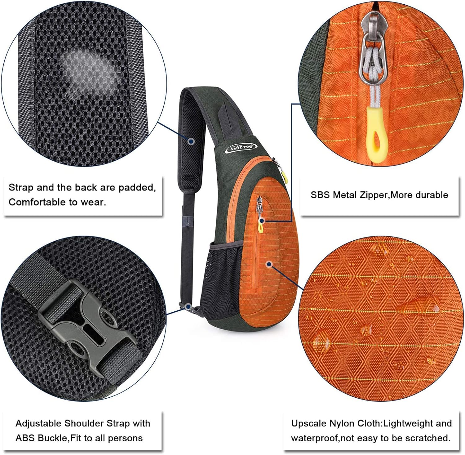 G4Free Sling Bag for Men Women, Small Crossbody Backpack Lightweight Chest Shoulder Bags for Travel, Outdoor and Sports (Grey-orange)
