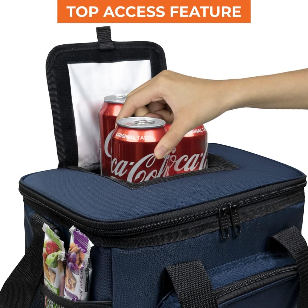 - SOFT COOLER INSULATED BAG: Soft sided pack cooler bag is the perfect insulated bag to keep your food, drinks, ice, and meals cool for camping, beach, picnics, road trips, work, office, and travel. Large capacity and fits up to 18 cans or multiple meals. Roomy enough for ice packs and ice blocks to keep your food extra fresh all day long. Portable soft cooler bag has adjustable reinforced soft carry shoulder straps, velcro handles, a large zipper front pocket, and mesh side pockets for bottles.