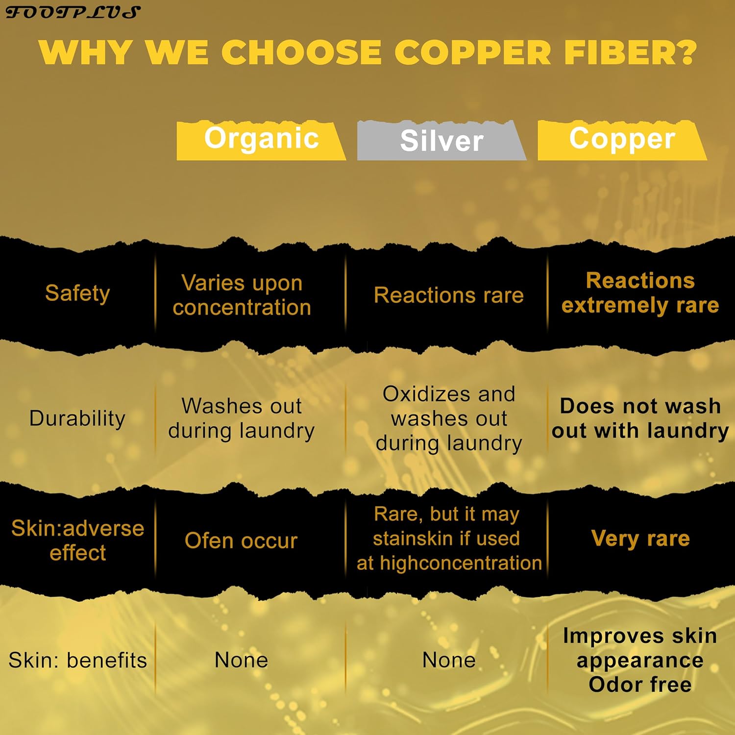 - COPPER PERFORMANCE SOCKS- The addition of copper can produce a protected area, eliminating 99% of the sweat and odor. No stinky feet or sweaty feet any more. The blended fabric is very soft and smooth
