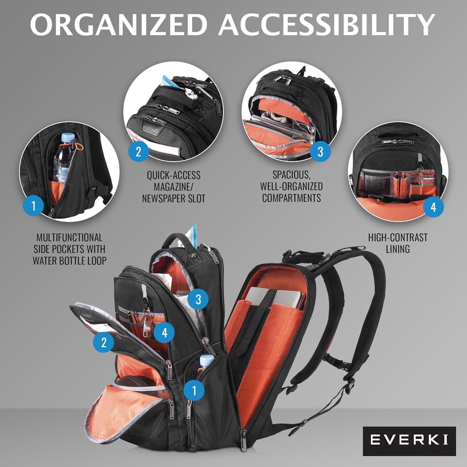 EVERKI Atlas 29.5L Business Laptop Backpack – Travel Backpack for Women & Men, Work/Travel Bag, Laptop Bag Fits 15.6-Inch, Backpack for Women, Men’s Laptop Bags – Black (EKP121S15)