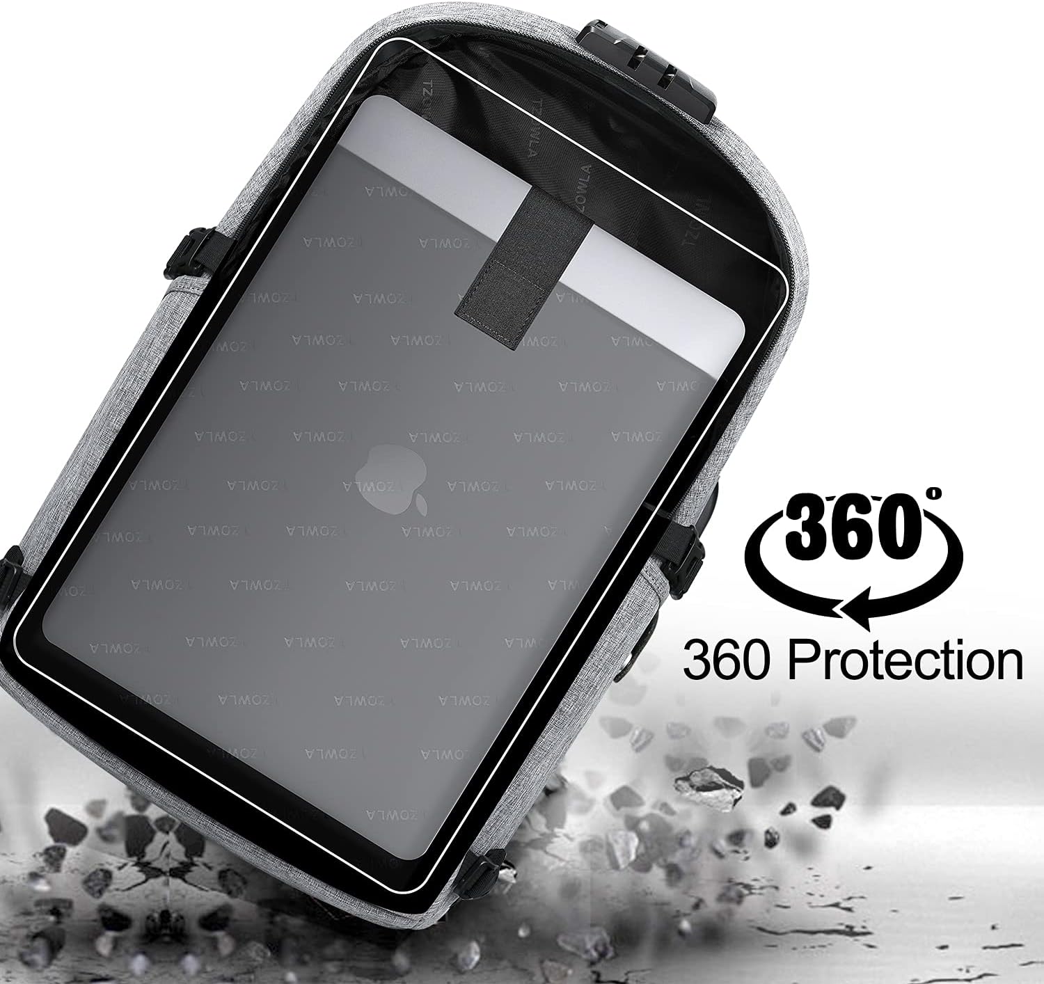 - [Large Storage Space & Pockets] Tzowla laptop bag measures 20 x 11.8 x 5.5 inch and has 2 compartments separately in the back, where one can hold a super thin 13, 14, 15 or a 15.6 inch laptop and the other for laptop accessories and daily necessities. In its front side, there is a compartment with pockets to hold your pad, journal, pens, phone, readers and durable side pockets are equipped on both sides to fit a water bottle or umbrella.