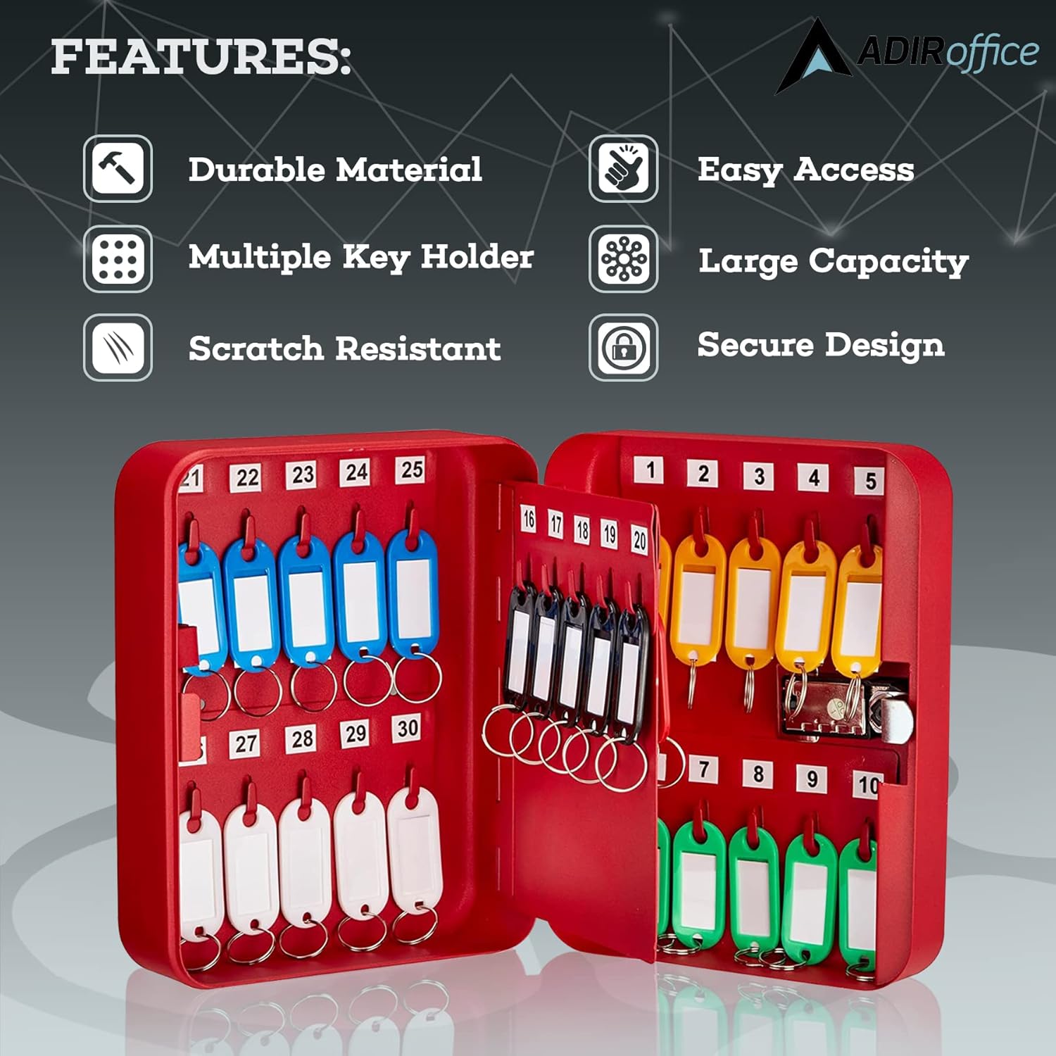 - Suit for Your Needs- AdirOffice wall-mounted lock box for keys is offered in two different sizes – 30 and 48 key hooks. Our key lockbox provides a great solution for the convenient and secure organization of all your keys.