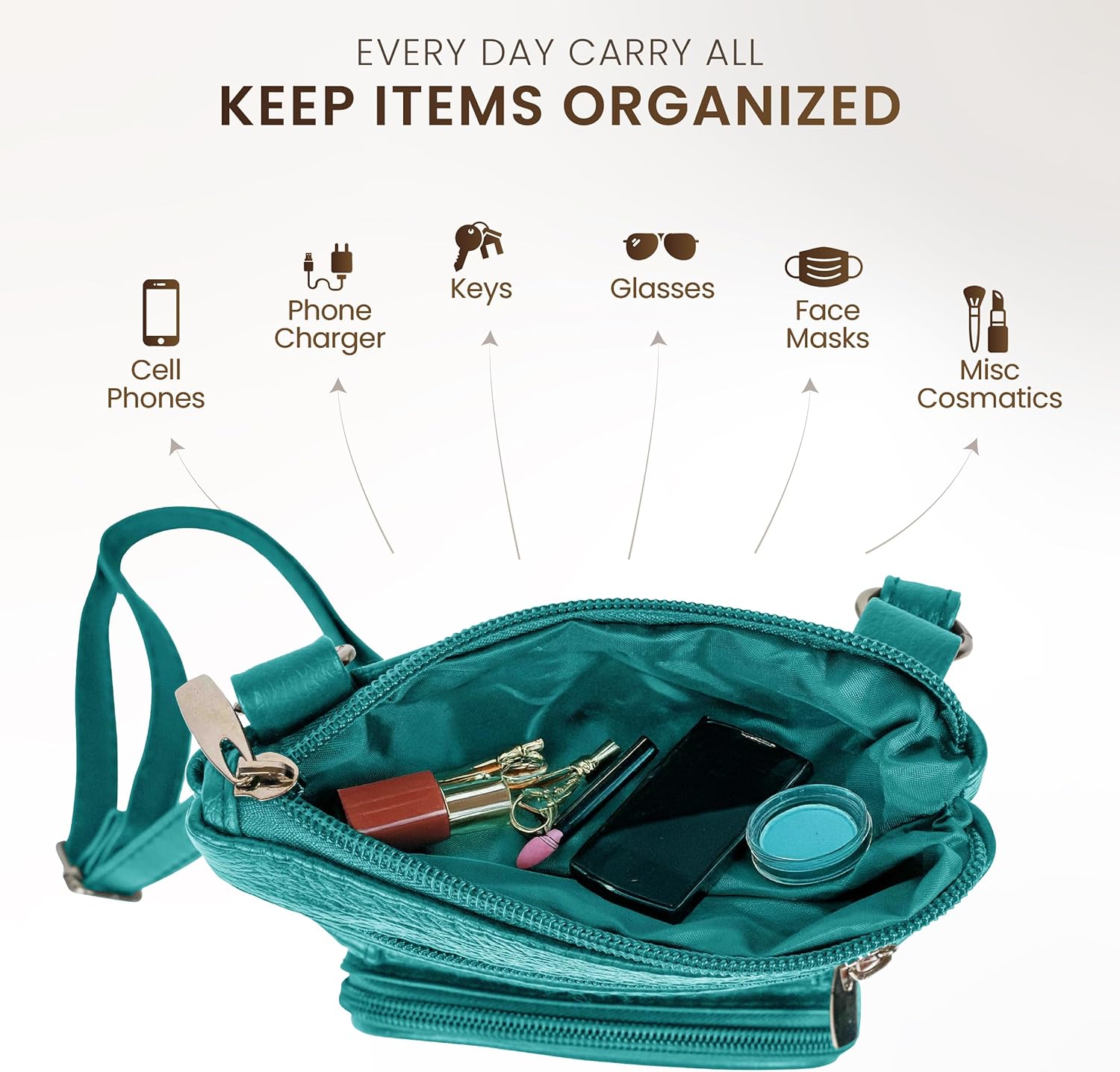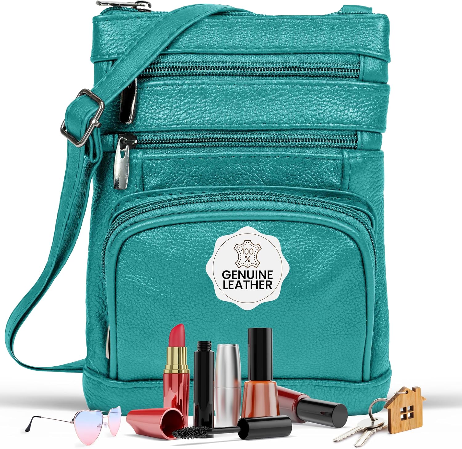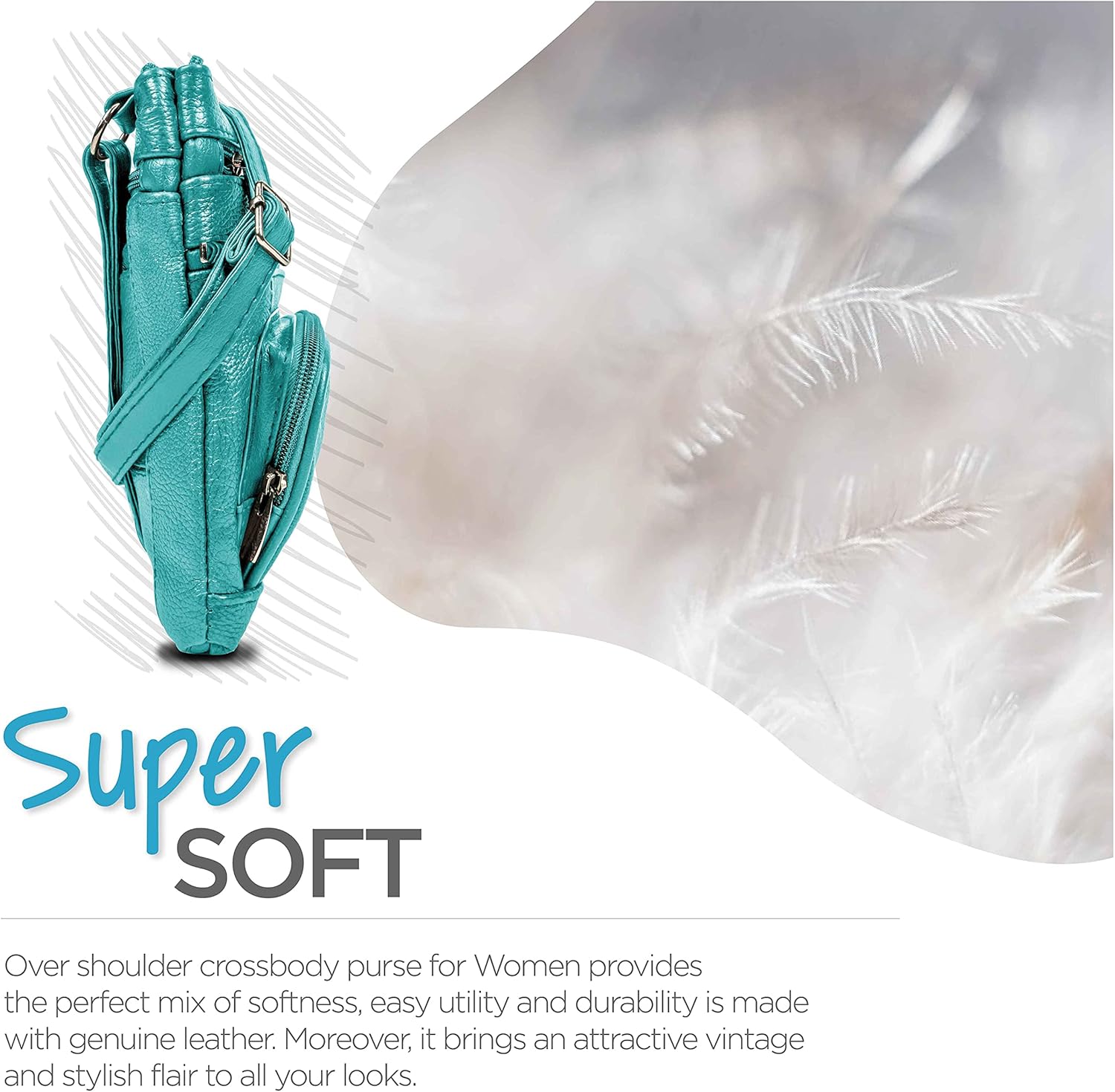 Krediz leather Crossbody Purses for Women, Multi Pocket Crossbody Purse with Adjustable Strap, Soft & Durable Leather Purse