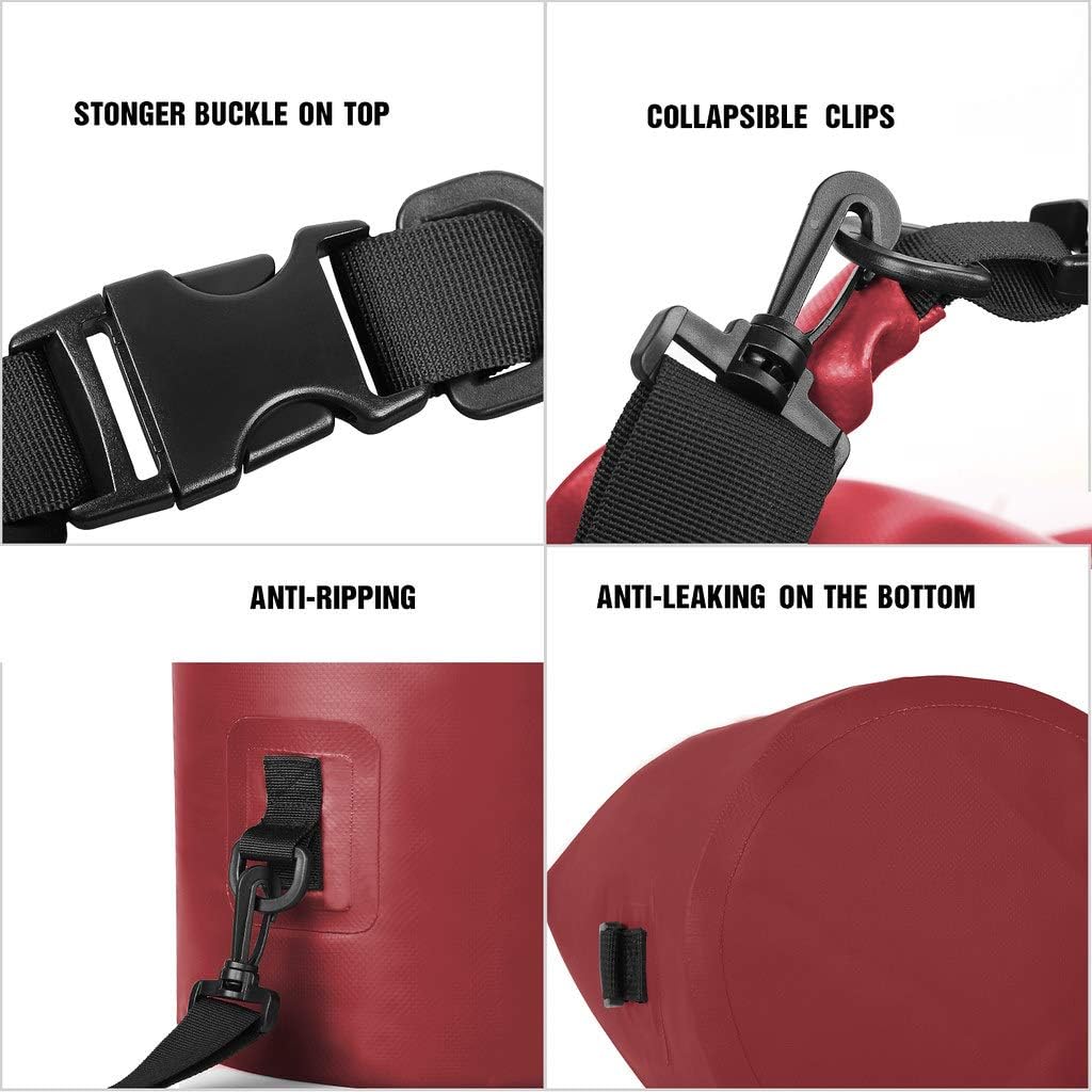 - VERSATILE AND DURABLE: You can leave the dry bag float on the water during river trip or other water sporting, no more worry about your items getting wet. The buckle and D-rings are upgraded with POM material, stronger than other traditional buckle. It will not break for frequent use