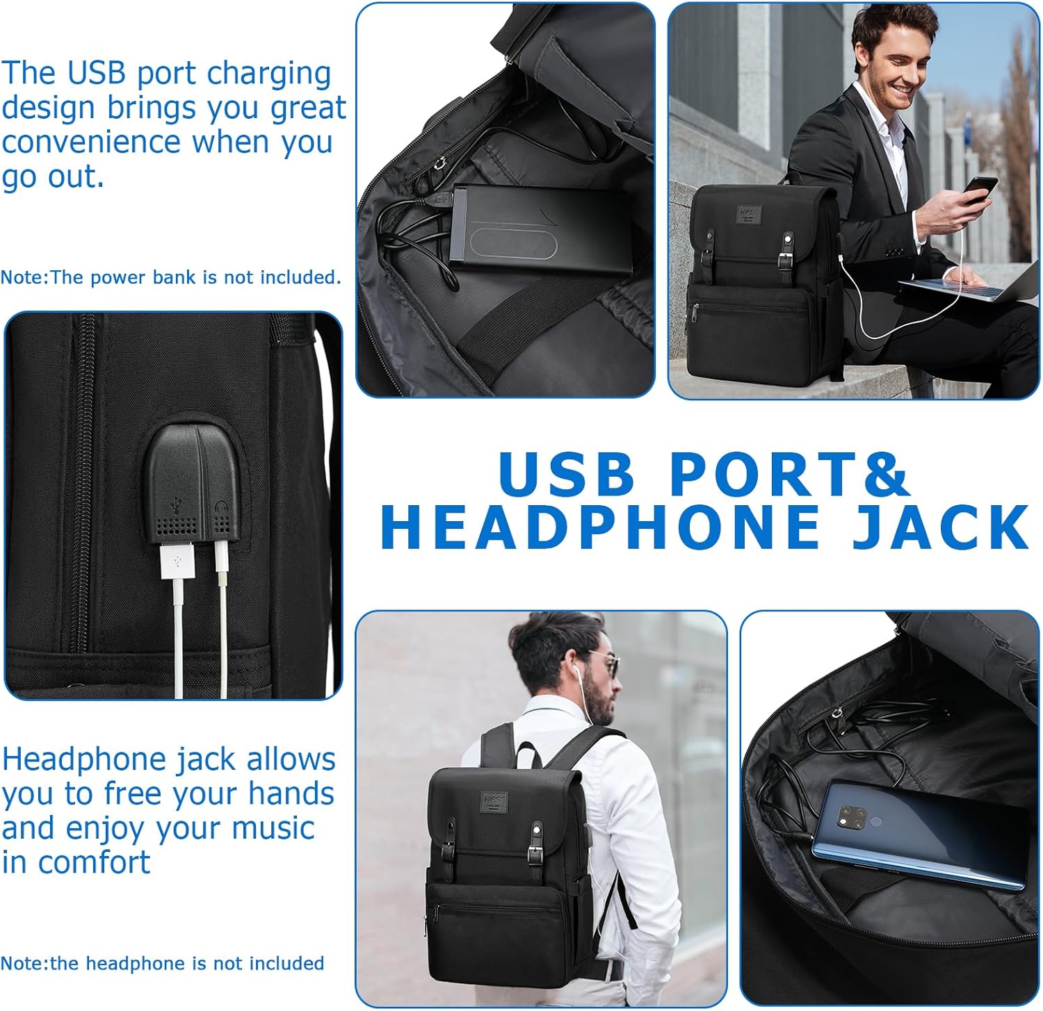 HFSX Vintage College Laptop Backpack for Women & Men - with USB Charging Port (Black, Fits 15.6 inch Notebook)