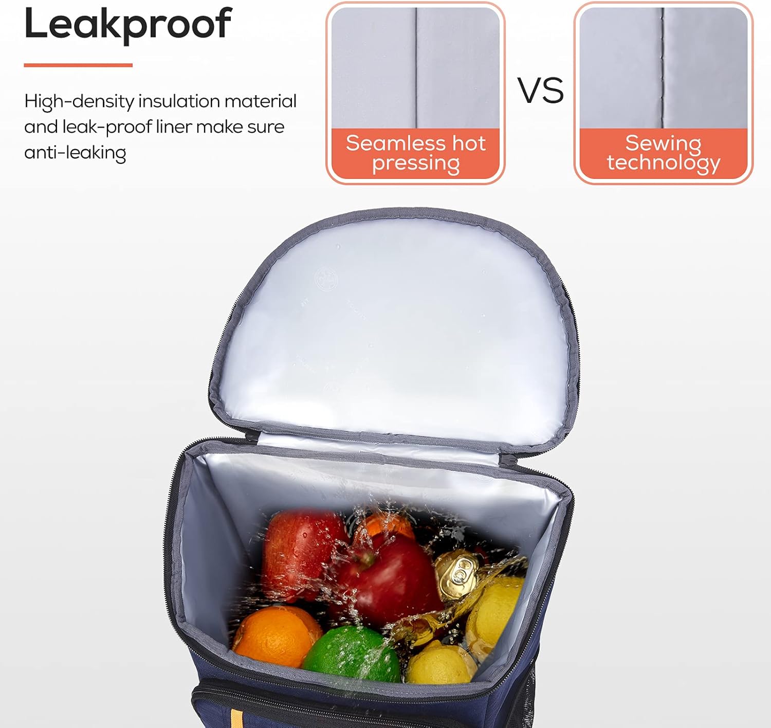 - Leakproof Cooler Backpack: High-density Insulation material and leak-proof liner inside the insulated backpacks work together to ensure anti-leaking and keep food hot / cold for 16 hours with ice packs