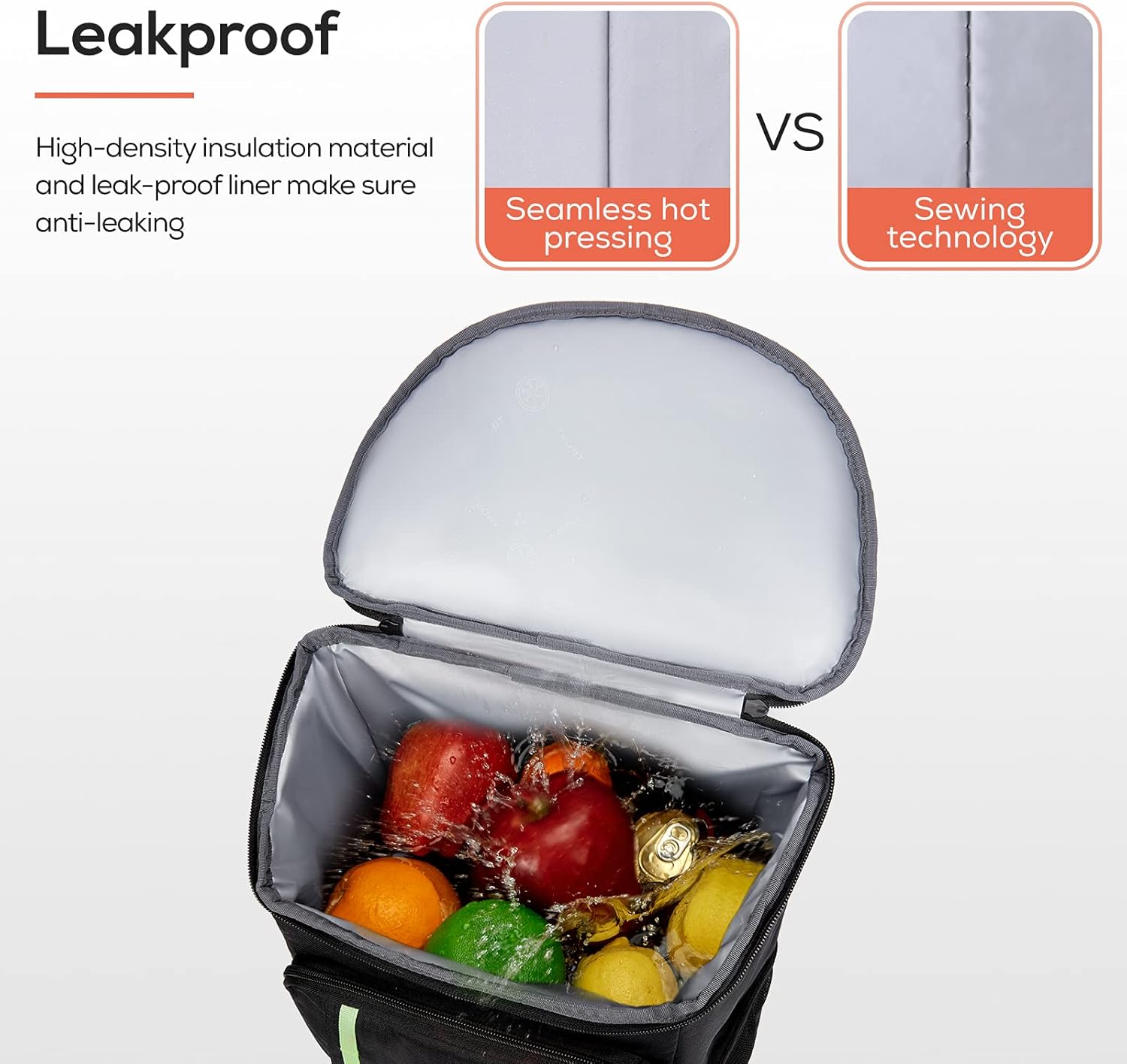 - Leakproof Cooler Backpack: High-density Insulation material and leak-proof liner inside the insulated backpacks work together to ensure anti-leaking and keep food hot / cold for 16 hours with ice packs