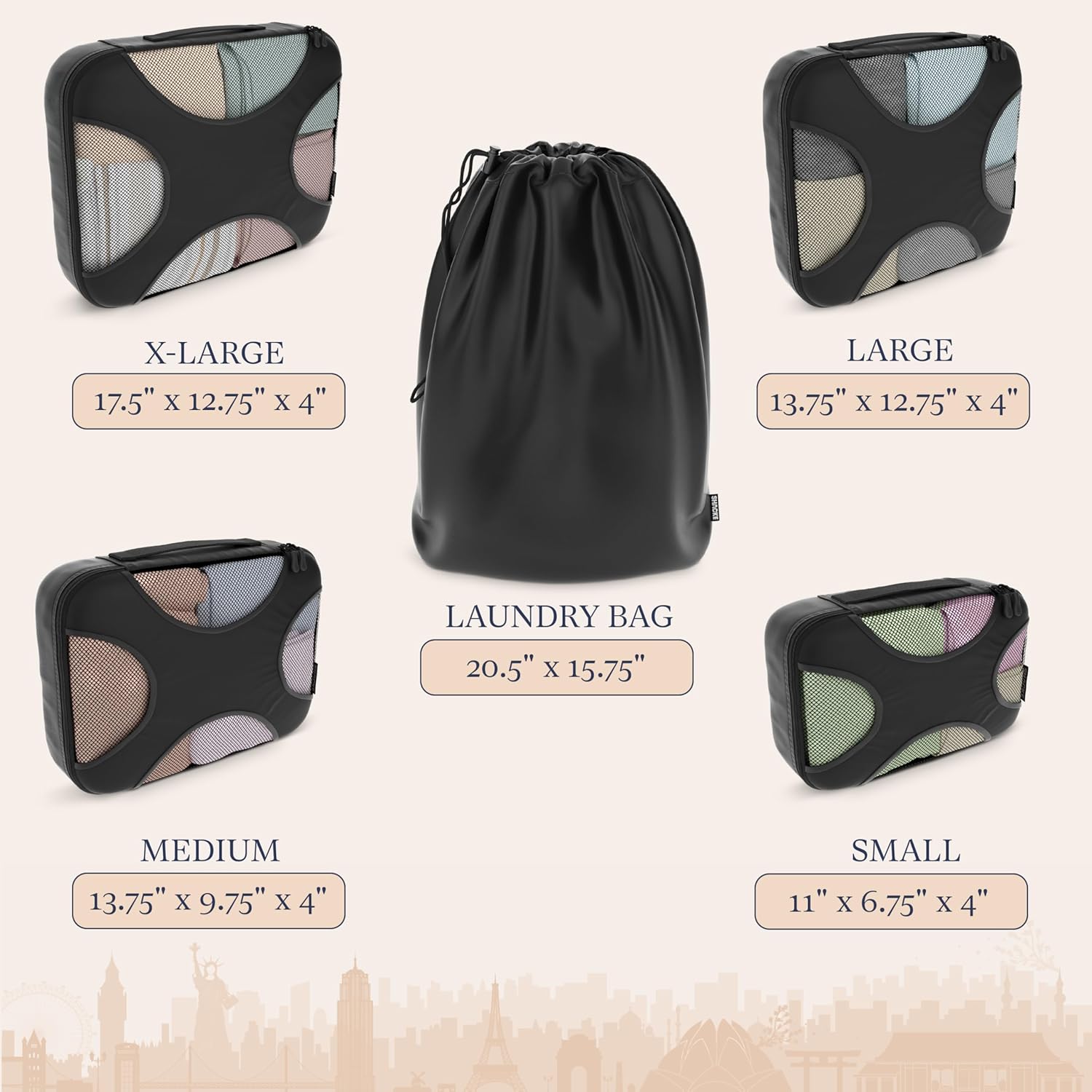 - Perfect for Any Type of Trip - Whether you travel by car, train, or plane, your Shacke Pak can make life on the road much easier! Our customers enjoy using their cubes for day trips or even a big romantic getaway in Paris. No trip is too big or too small for the versatility of our packing cubes.