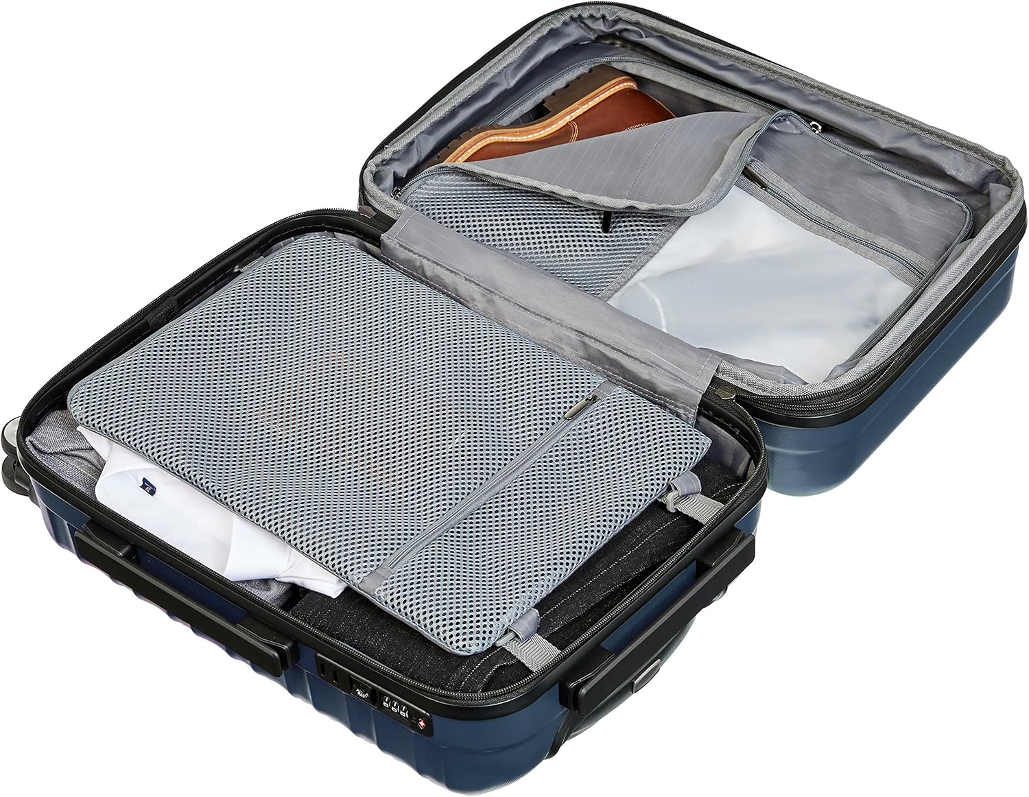 Amazon Basics 21-inch Carry On Luggage, Suitcase With Wheels (8 Spinner Wheels), TSA Lock, Expandable Capacity, Interior Divider and Pocket For Dry and Damp Clothes, Navy Blue