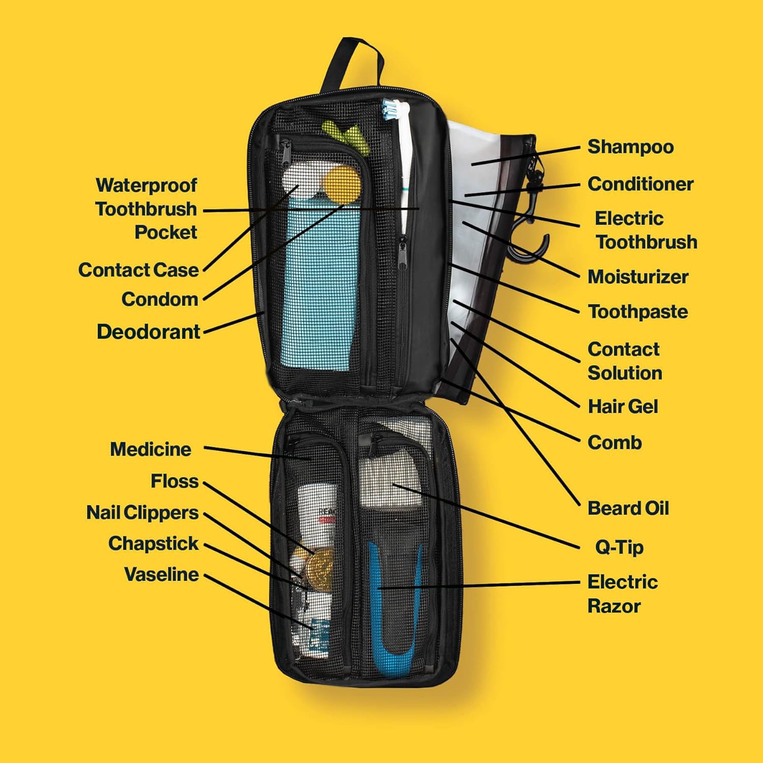 - No More Overstuffing or Spills – Built with thoughtfully sized compartments for your travel-size liquids, razor, and regular toothbrush — snug but efficient to keep everything secure in transit.