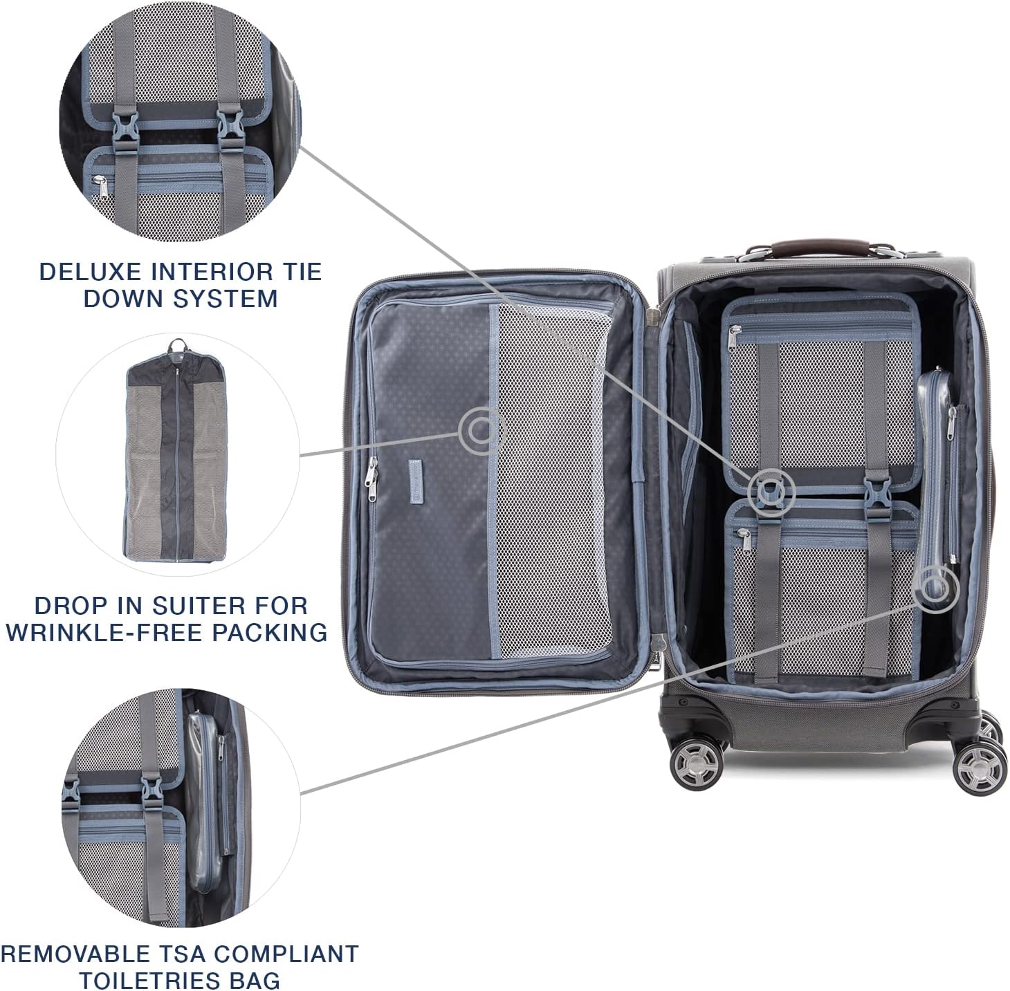 Travelpro Platinum Elite Softside Expandable Carry on Luggage, 8 Wheel Spinner Suitcase, USB Port, Suiter, Men and Women, Vintage Grey, Carry On 21-Inch