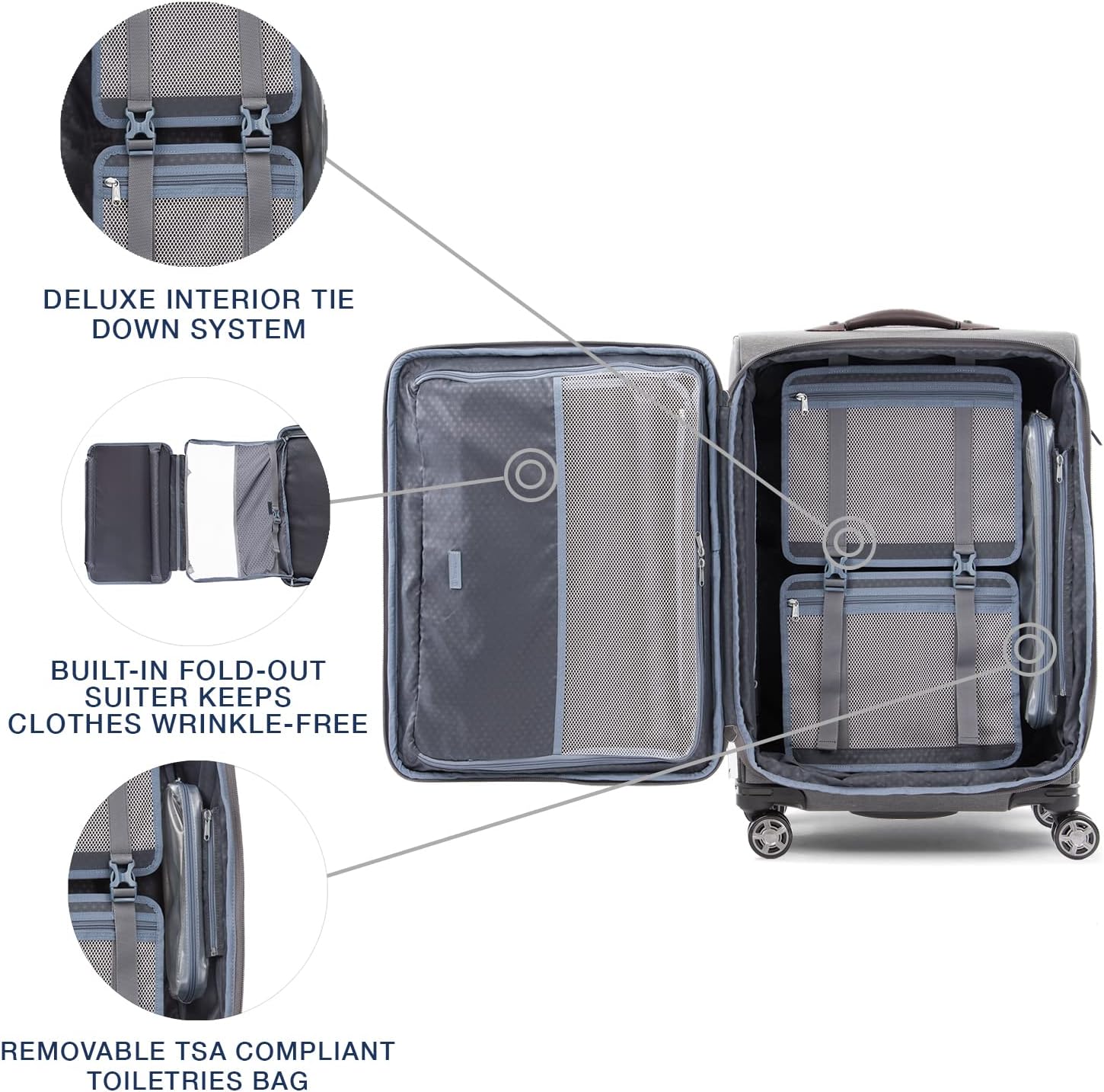 Travelpro Platinum Elite Softside Expandable Checked Luggage, 8 Wheel Spinner Suitcase, TSA Lock, Men and Women, Vintage Grey, Checked Medium 25-Inch