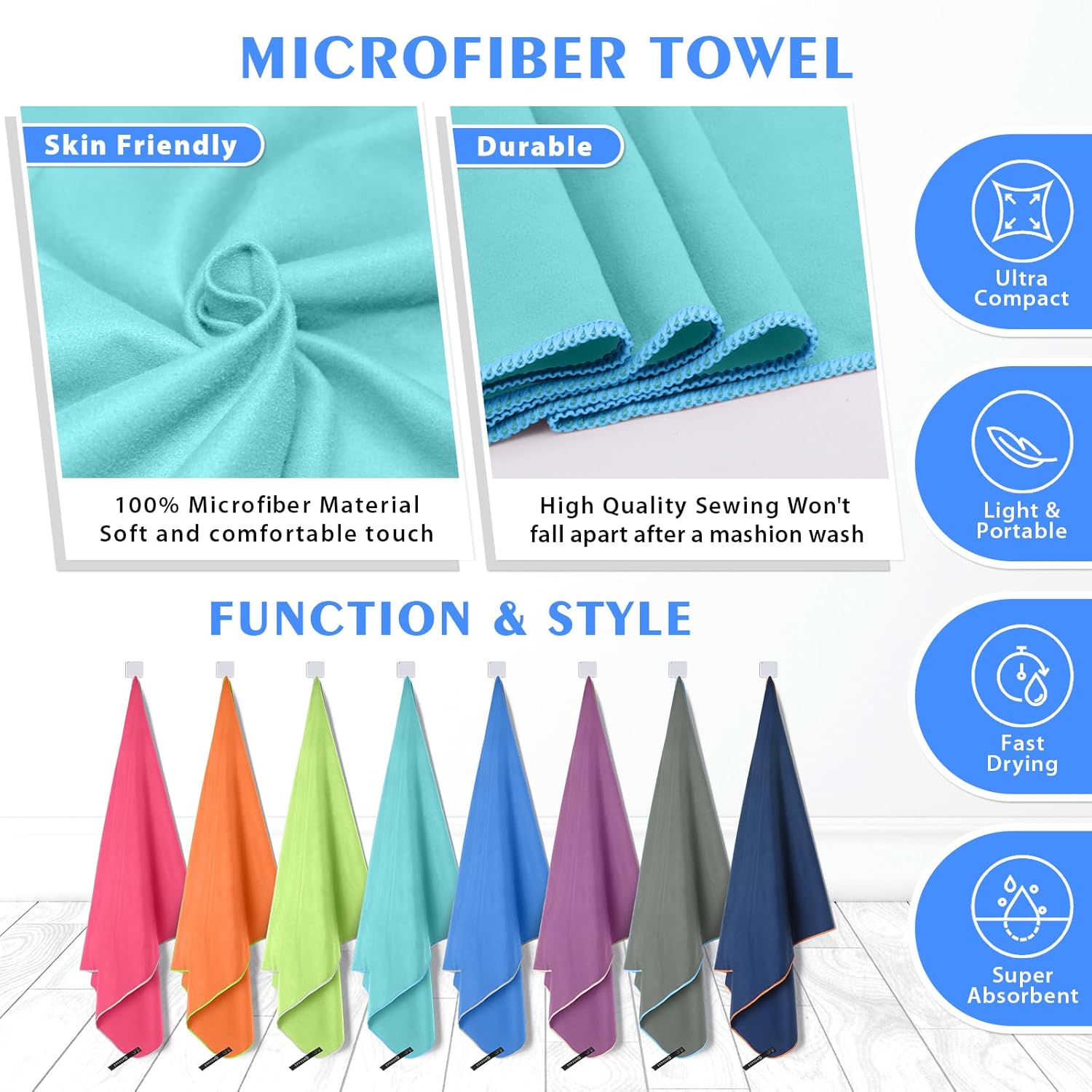 - SUPER ABSORBENT & QUICK DRYING: Microfiber camping towel is made of soft and skin-friendly microfiber fabrics, which super absorbent and fast drying. Soaks up 5X its weight in water and dries nearly 10X faster than cotton towel, repeat use it a short time, no bad odors. What's more surprising is that you never have to worry about your microfiber beach towels soiling or stinking up the rest of your gear. After dry your sweat or body water, Spread out or hang up the quick dry towel will be dry.
