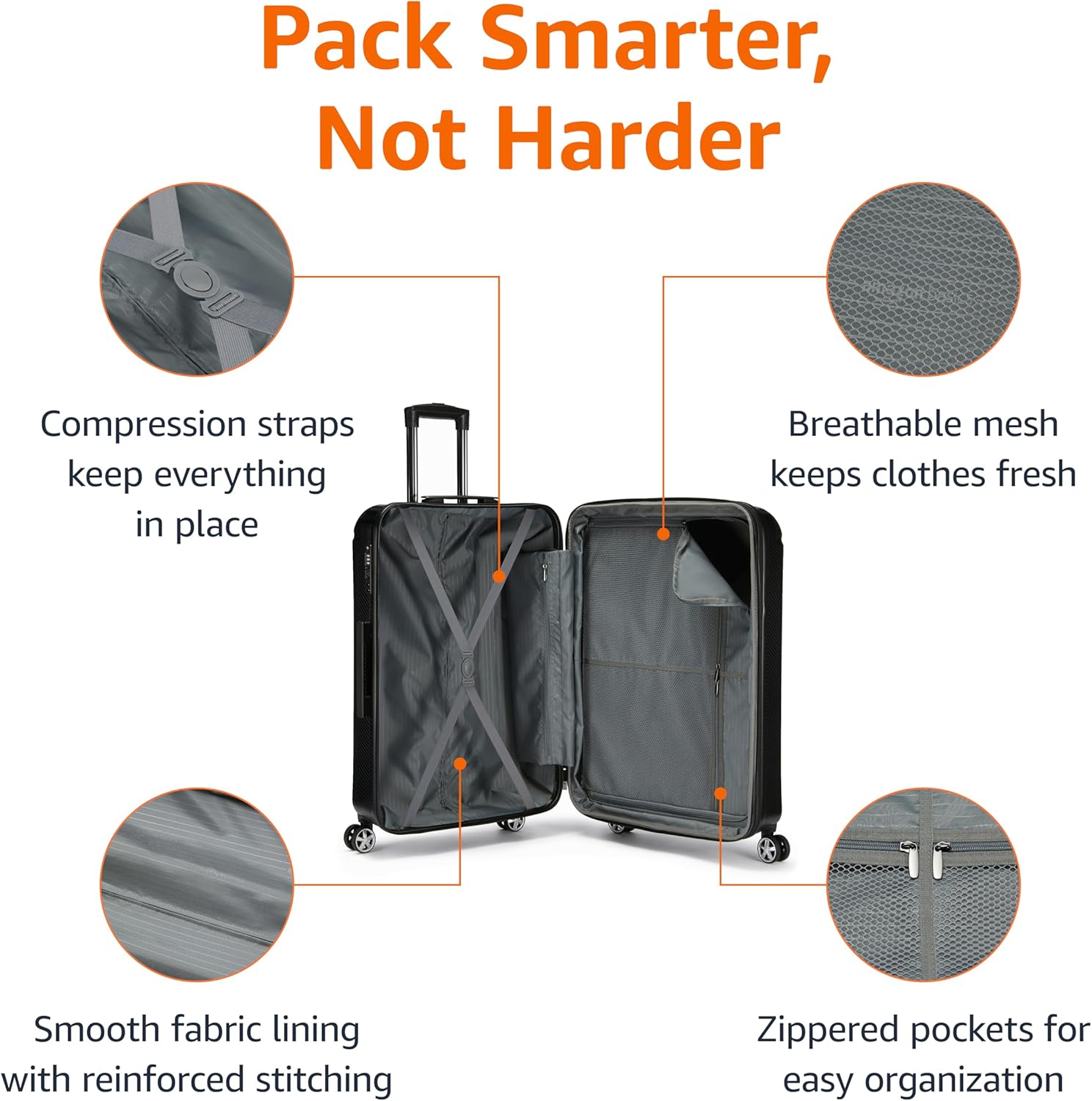 - AMPLE STORAGE: With 97-liter (3.43 Cubic Foot) interior capacity, this large suitcase allows for ample packing space and easy size adjustment