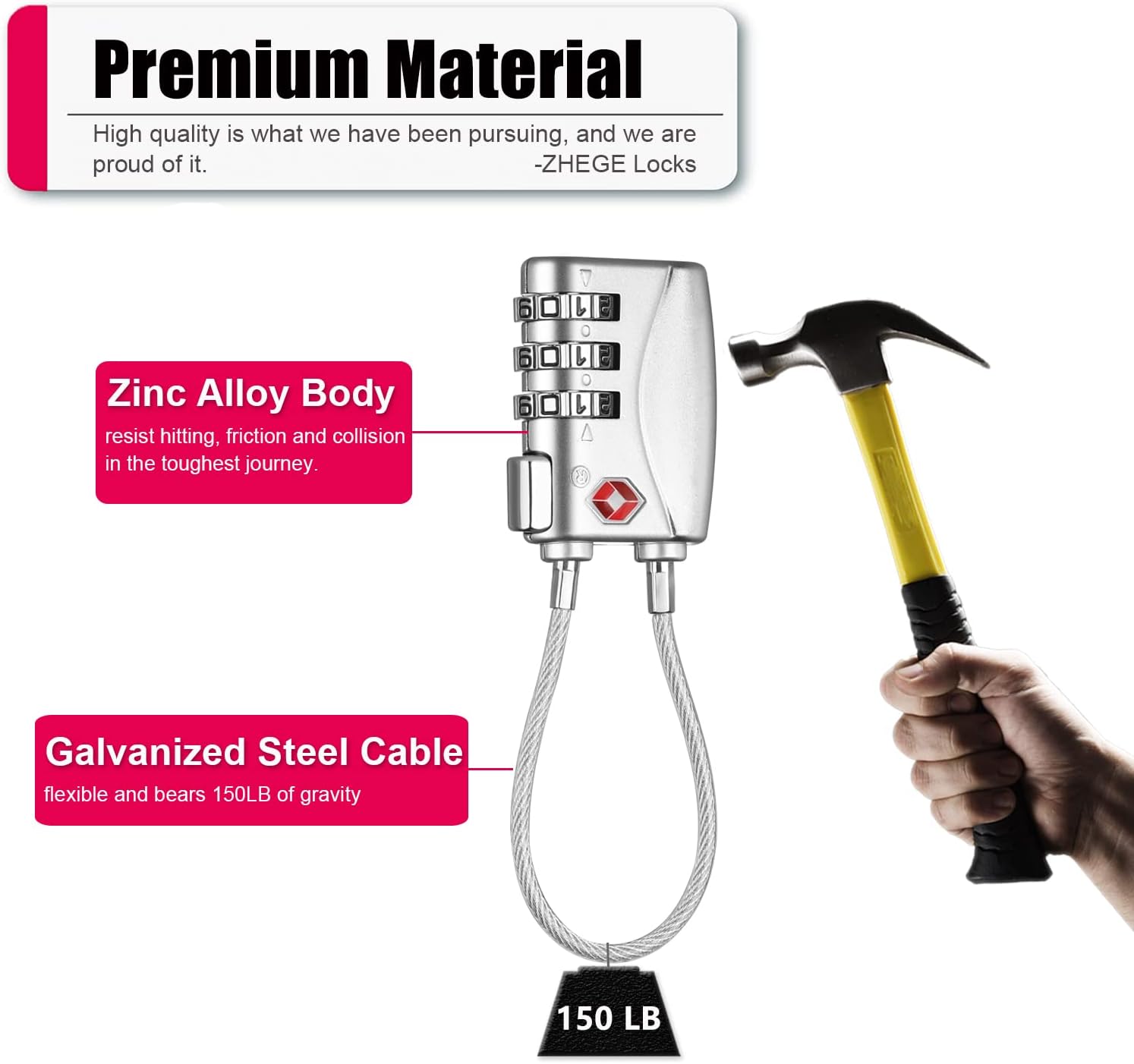 - TSA Approved: The wire lock allows TSA screeners to unlock and inspect your baggages with an official master key. And they have to re-lock before remove their key. With zhege tsa cable luggage lock, your belongings will always be protected.
