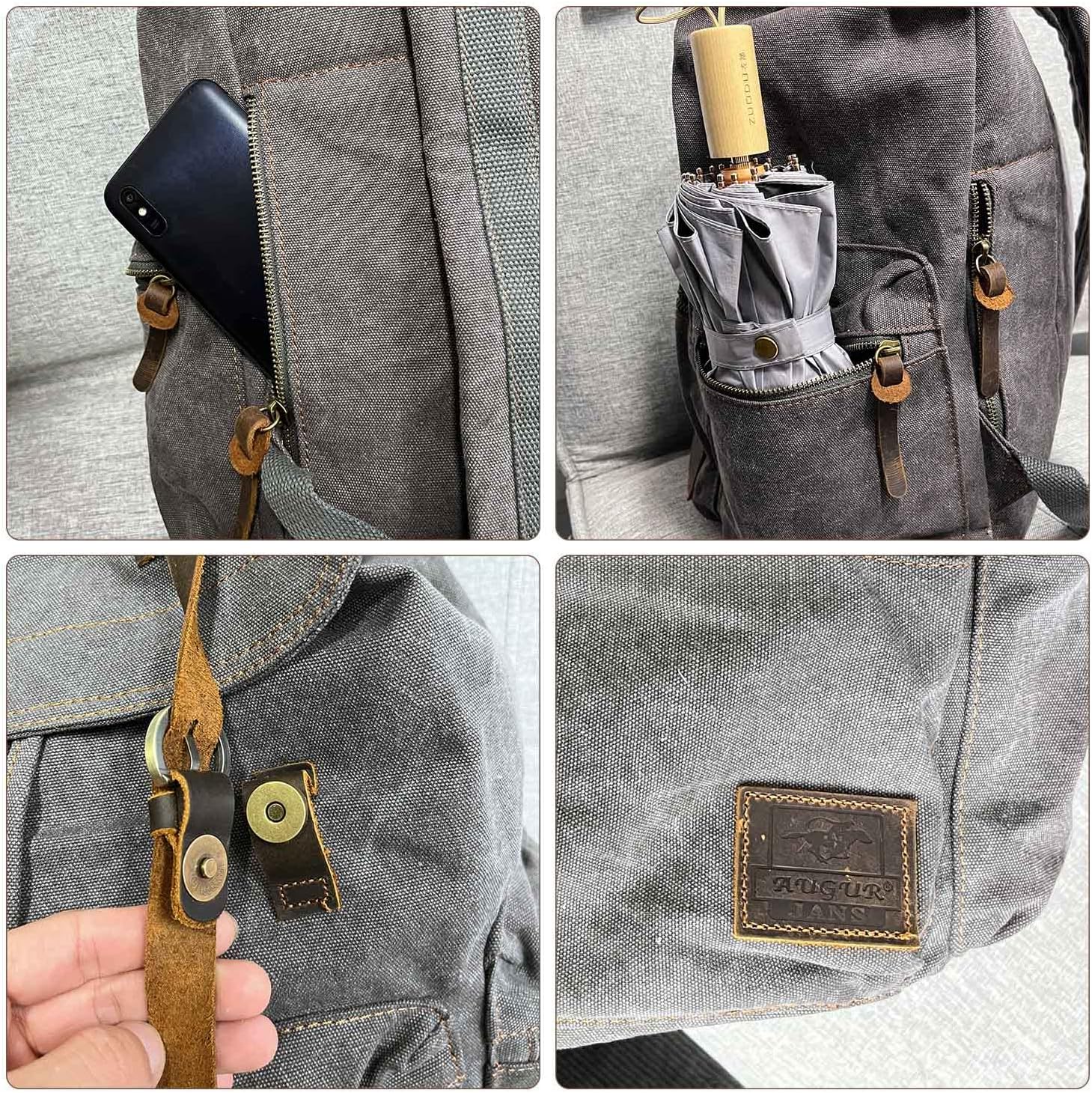 AUGUR High Capacity Canvas Vintage Backpack - for Camping Hiking Travel 12-15" Laptop Rucksack School Backpack (M-Gray)