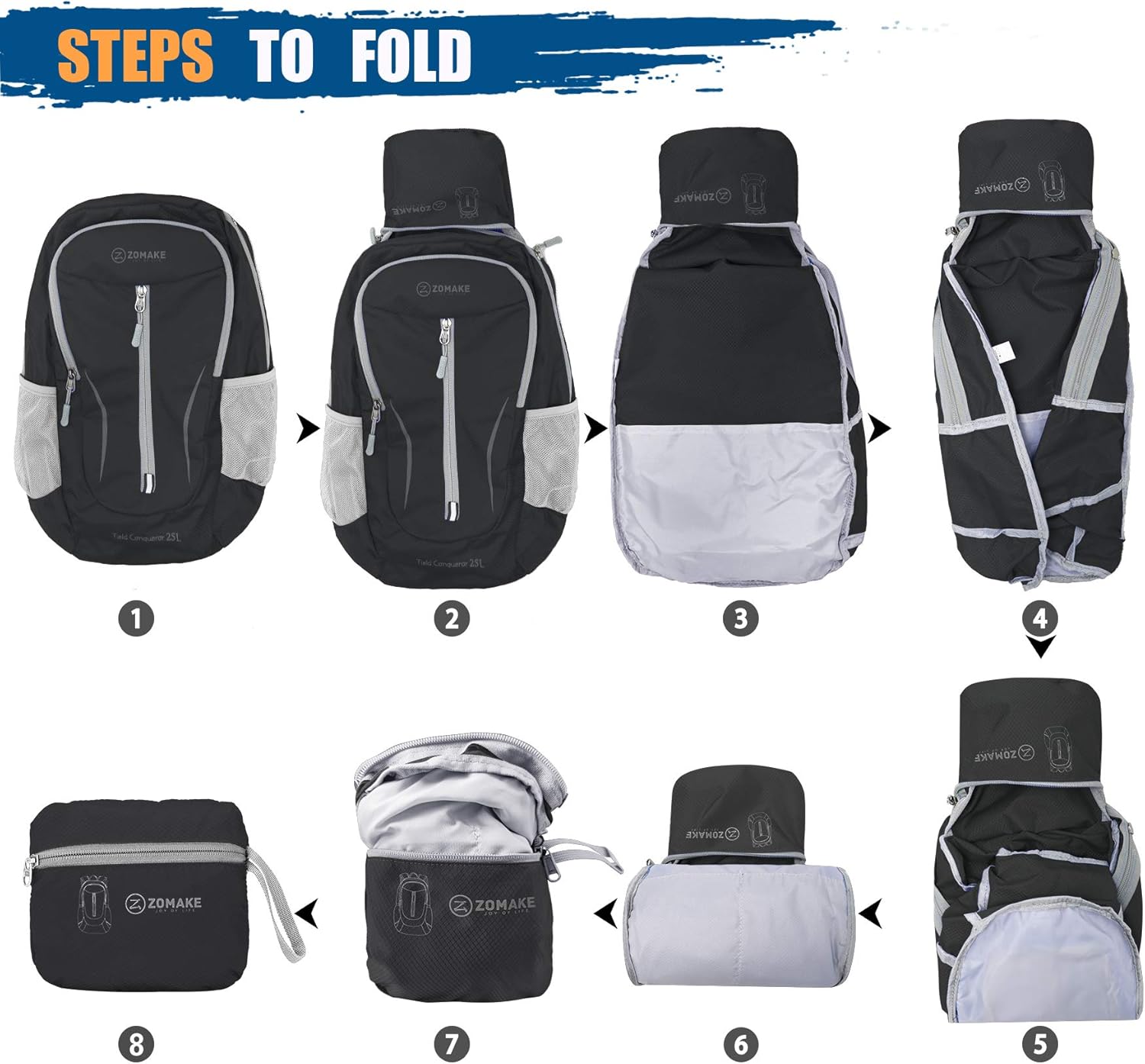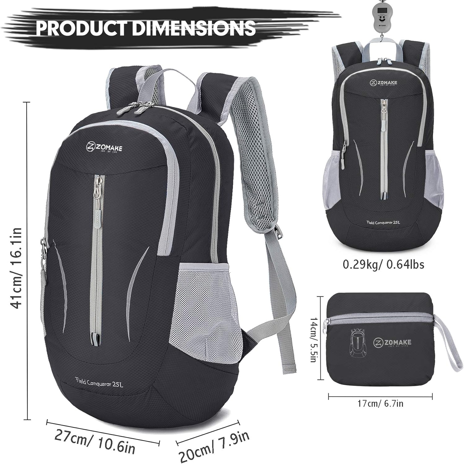 - Flexible and Convenient: Our ultra lightweight foldable backpack weight is 0.64 LB,the expansion size is 16.1×10.6×7.9 inch,and the folding size is 5.5×6.7×2 inch.Small foldable backpack is an ideal luggage bag for a plane.When it is not used,fold it into a compact pocket (sandwich size).It can be stored in anywhere of coat pockets,luggage,handbags,etc