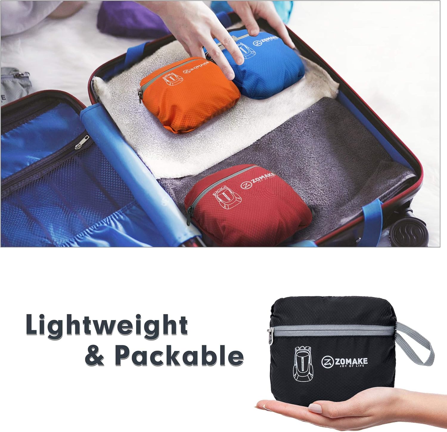 - High-Quality Materials: Our light foldable backpack is water resistance(note:not completely waterproof).We use high-tear nylon fabrics and use the latest double-layer wear-resistant process to reinforce the backpack suture.After high-quality materials and light foldable hiking backpacks produced by good craftsmanship,it can effectively protect the items in the backpack.The zipper made of two-way SBS metal and high-quality resin materials greatly reduces the trouble of being stuck in the zipper