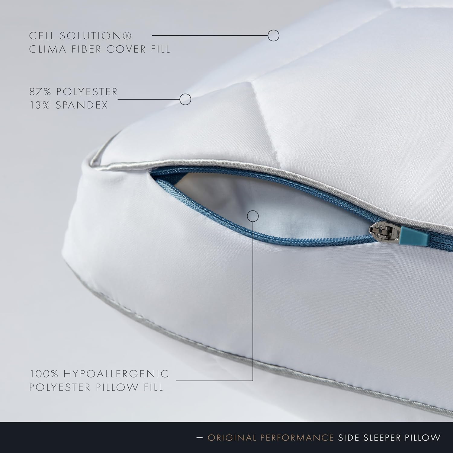 - COOLING FABRIC: Specially designed for better-quality sleep, this pillow has a hex-quilted moisture-wicking cover that combines our breathable, cool-to-touch Original Performance fabric with Cell Solution CLIMA fibers for improved temperature regulation.