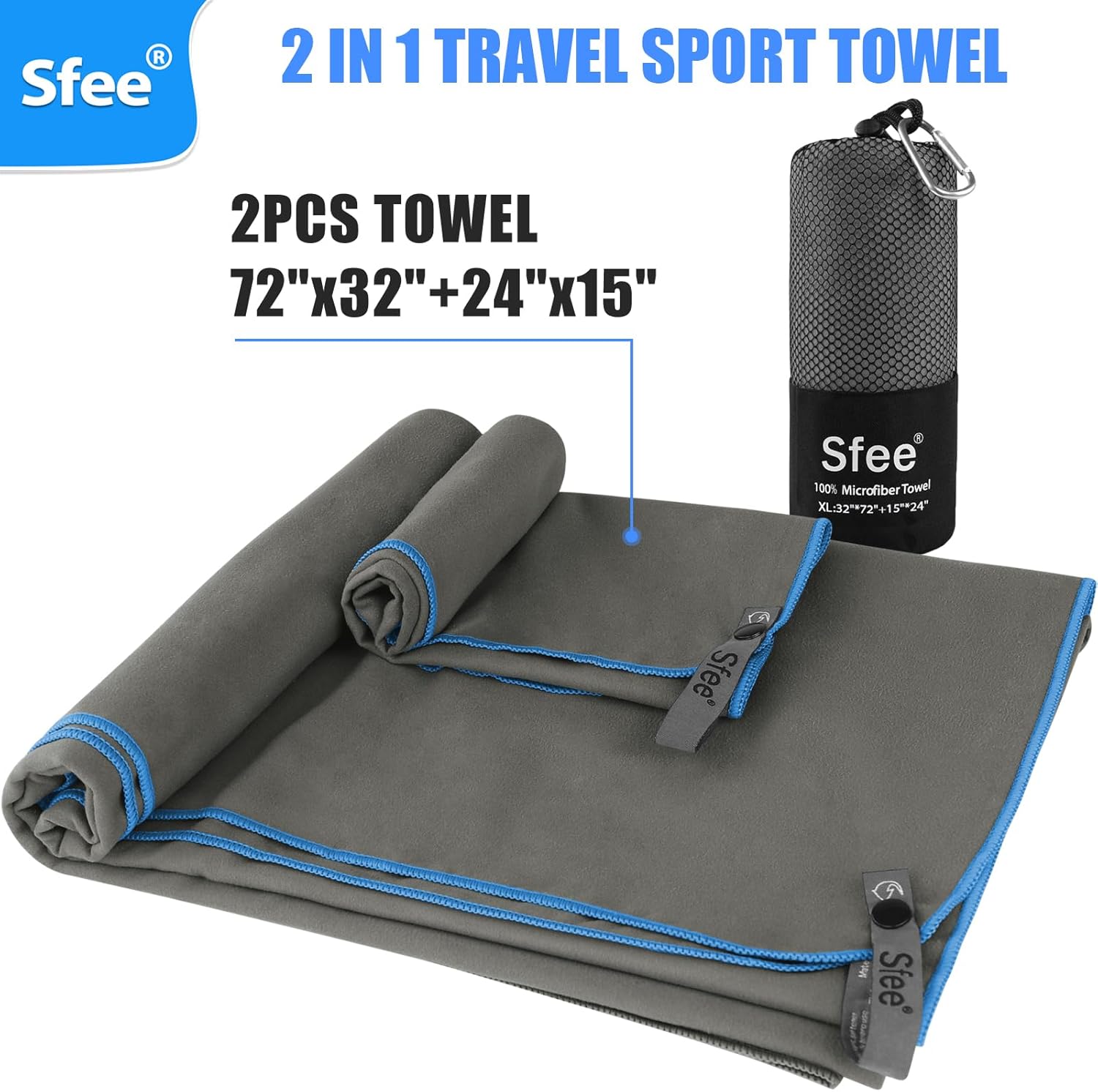 - Easy to Carry & Lightweight: Sfee quick dry beach towel made to save the space and to be more useful for traveling, professional travel, outdoor and beach side use. Our lightweight towel for travel are super space saving and easy to stuff it into your suitcase or backpack. Camping towel sets come with hanging loop for easy to carry. It is convenient hanging for quick dry anywhere without blew away.