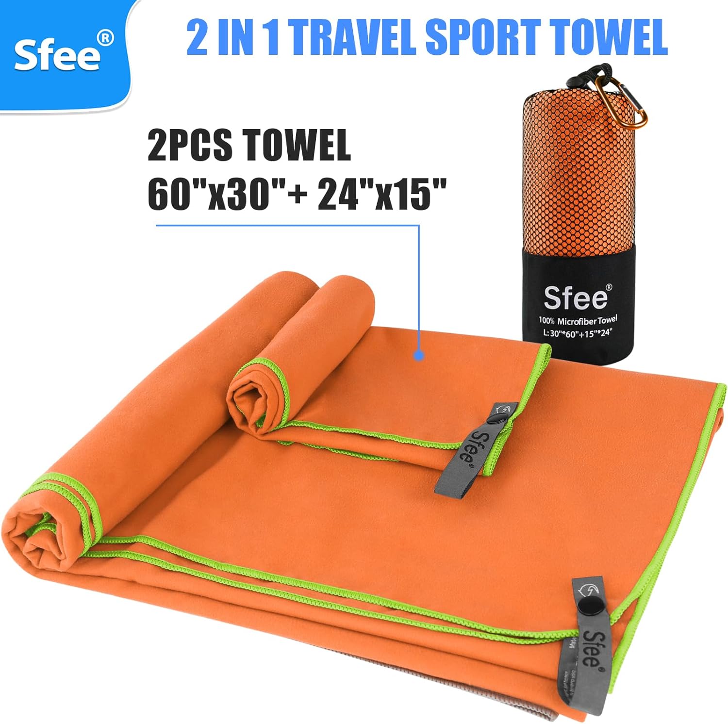 - Easy to Carry & Lightweight: Sfee quick dry beach towel made to save the space and to be more useful for traveling, professional travel, outdoor and beach side use. Our lightweight towel for travel are super space saving and easy to stuff it into your suitcase or backpack. Camping towel sets come with hanging loop for easy to carry. It is convenient hanging for quick dry anywhere without blew away.