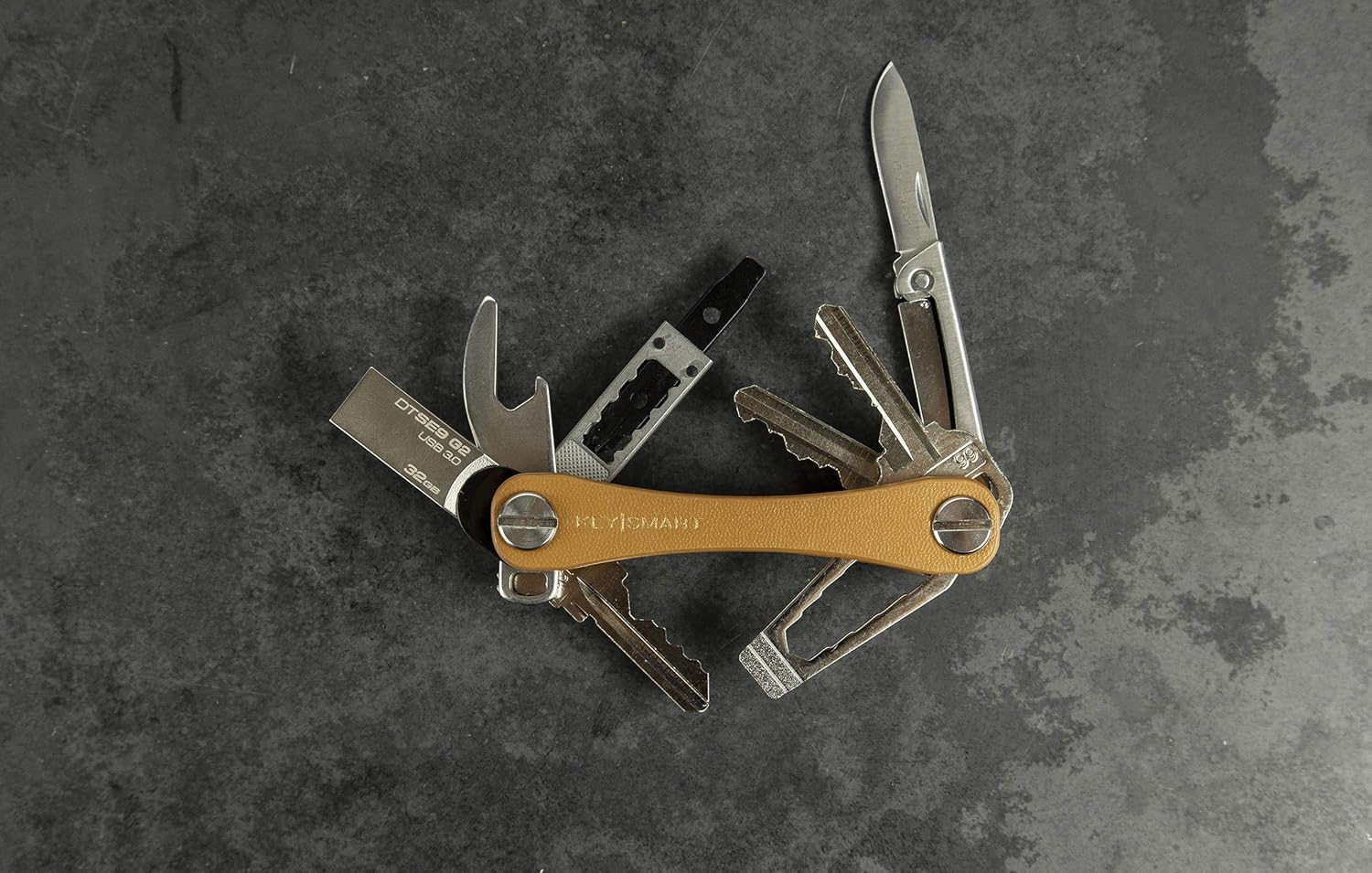 - Included Components : Aircraft aluminum frames Stainless steel hardware Rubber, KeySmart Leather Compact Key Holder