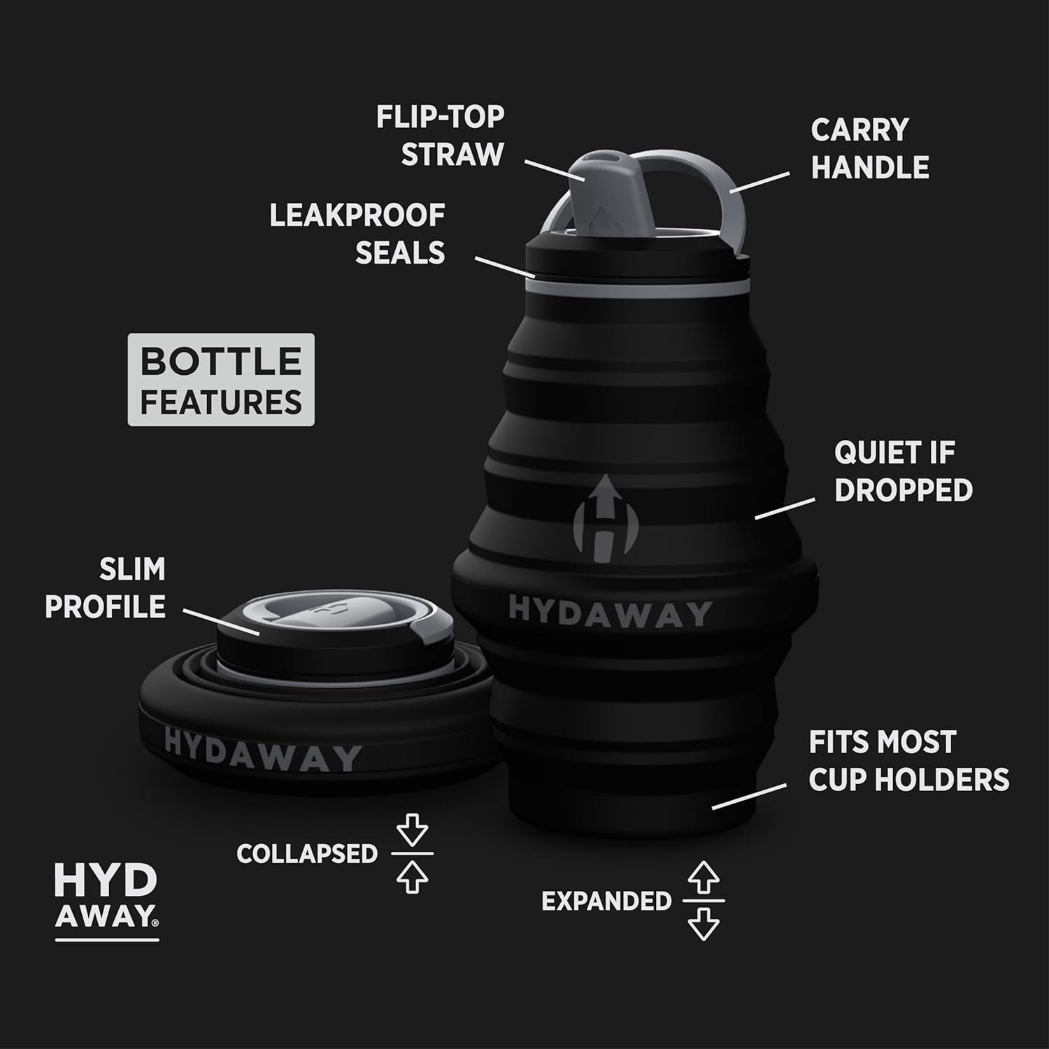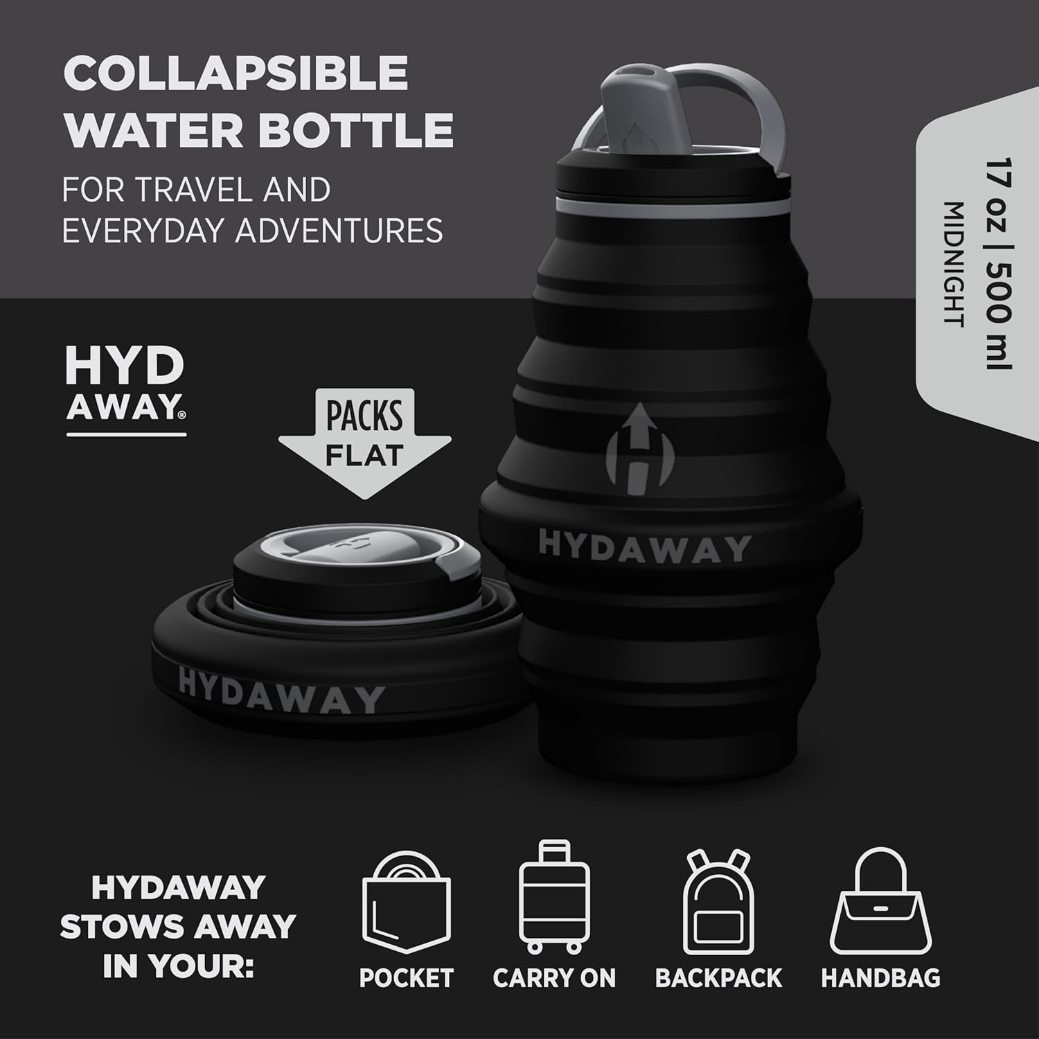 HYDAWAY 17oz Collapsible Water Bottle - BPA-Free, Leakproof, Lightweight, and Space-Saving - Perfect for Travel, Hiking, and Everyday Hydration