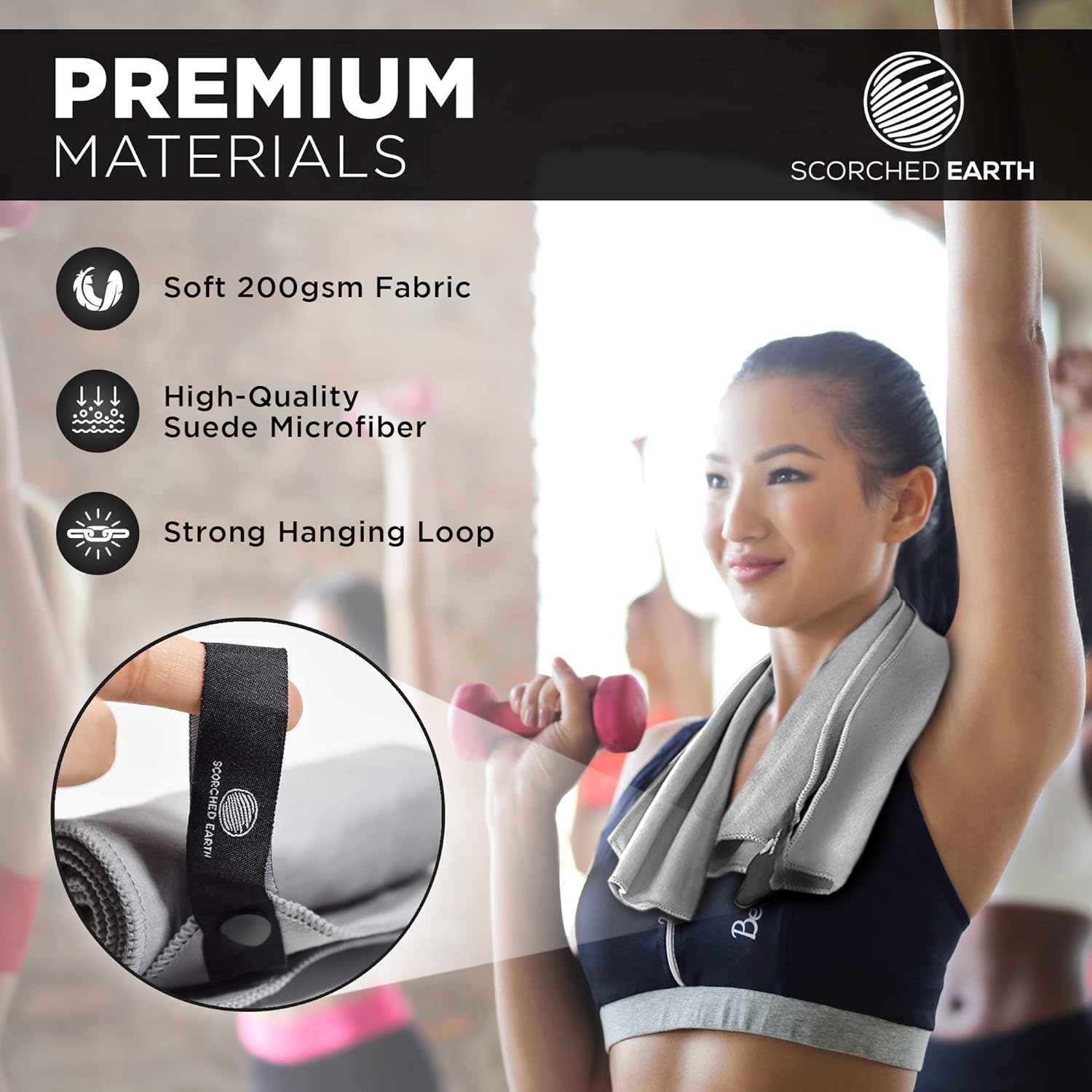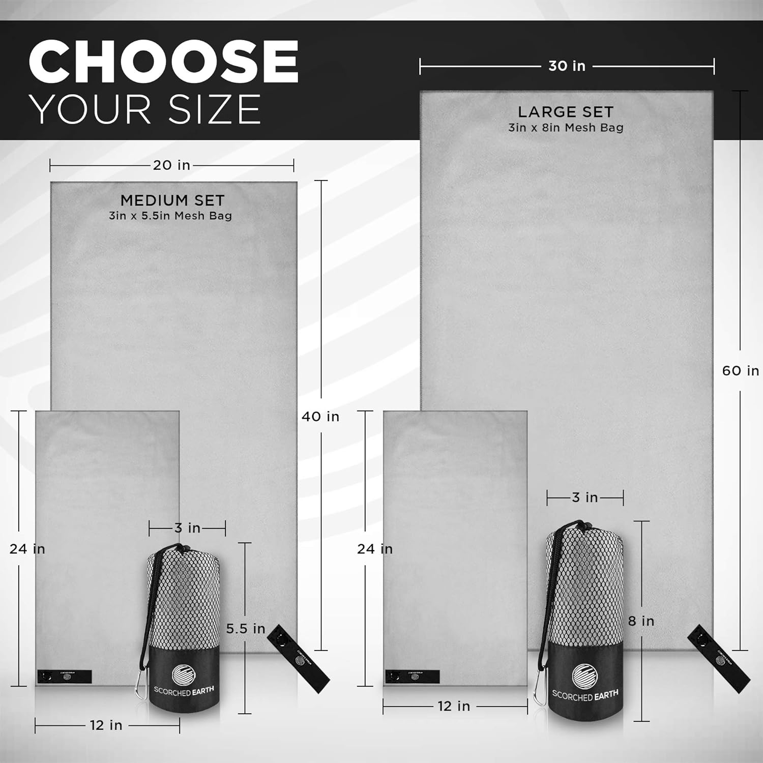ScorchedEarth Microfiber Travel & Sports Towel Set - Quick Dry, Super Absorbent, Compact, Lightweight - for Camping, Backpacking, Hiking, Beach, Yoga, Swimming - Includes 2 Sizes + Carrying Bag & Clip