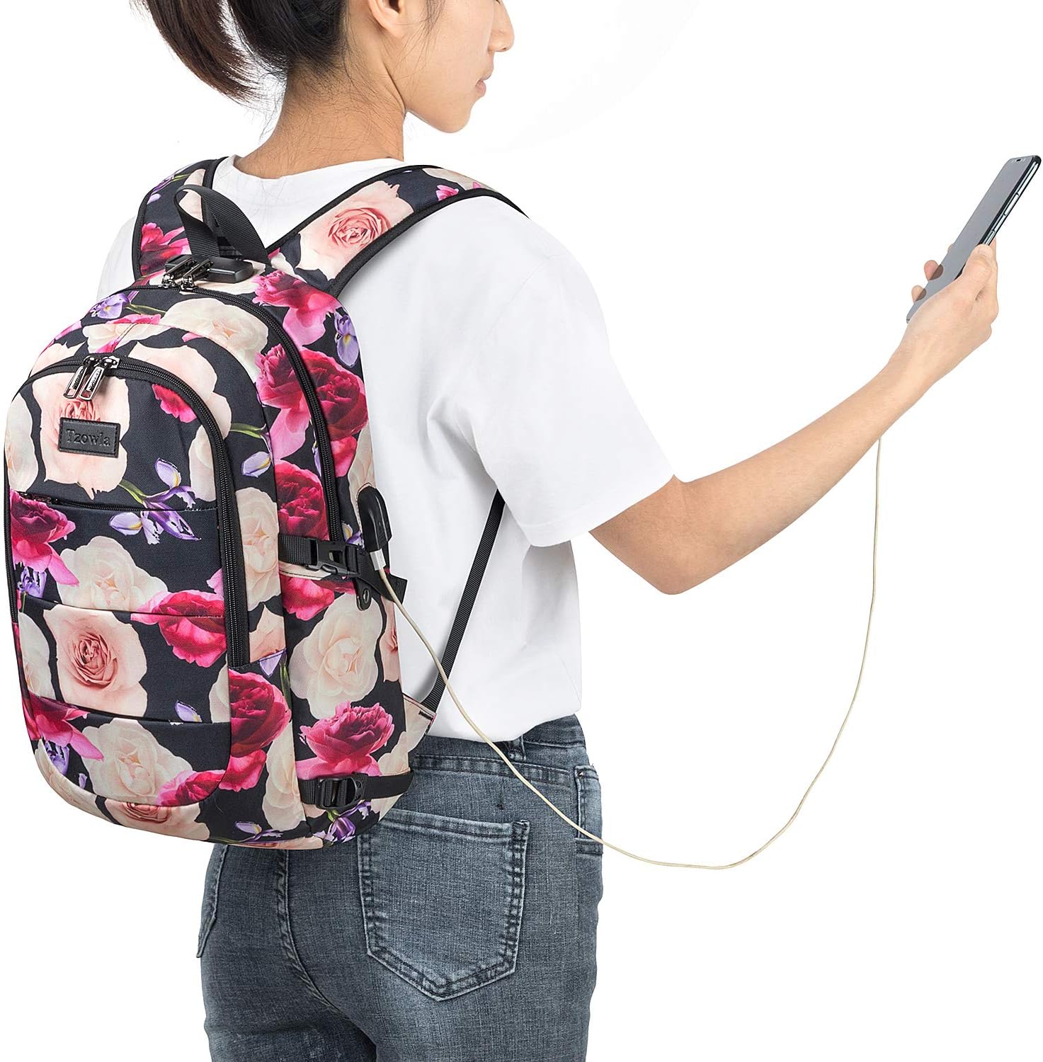 Tzowla Business Laptop Backpack Water Resistant Anti-Theft with USB Charging Port and Lock 15.6 Inch Computer Backpacks for Men, Women, Casual Hiking Travel Daypack (Flower)