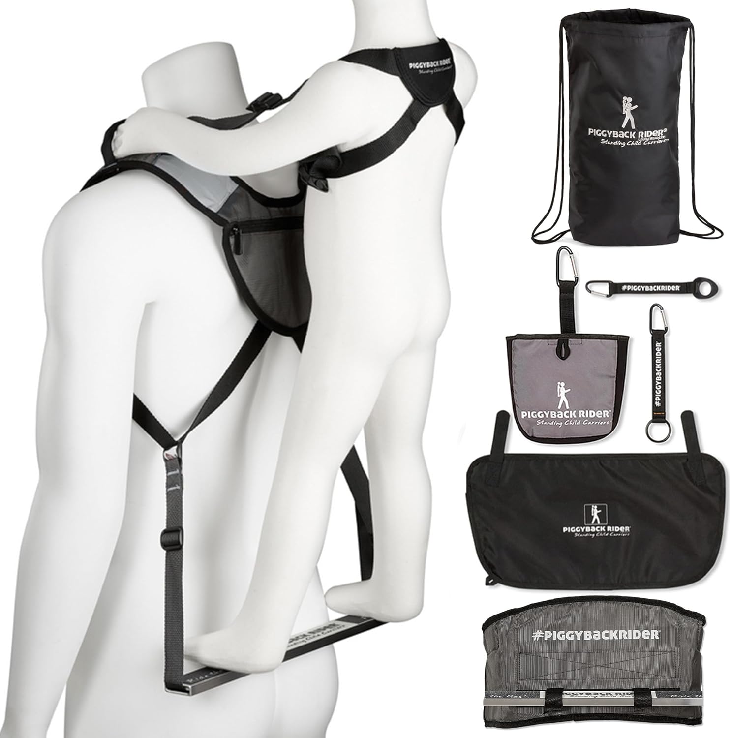 - Carry Comfortably: Create memories and share laughter with our child backpack carrier. Our piggy back carrier's weight distribution shifts the load to your shoulders. For extra back support with children over 25 lbs, try our hip belt accessory.