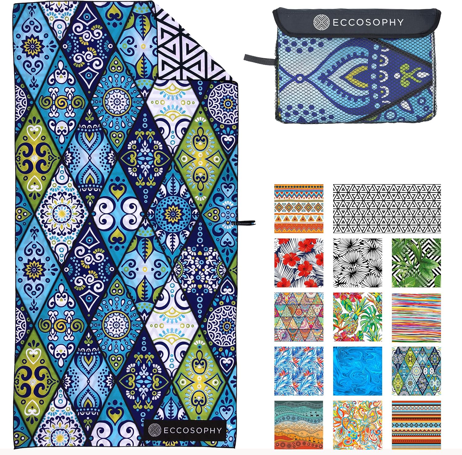ECCOSOPHY Microfiber Beach Towel - Sand Free Towels are Quick Dry, Light Weight, Super Absorbent - Perfect Pool, Travel, Cruise, Camping Essentials - Oversized Extra Large for Adults 71x35 in
