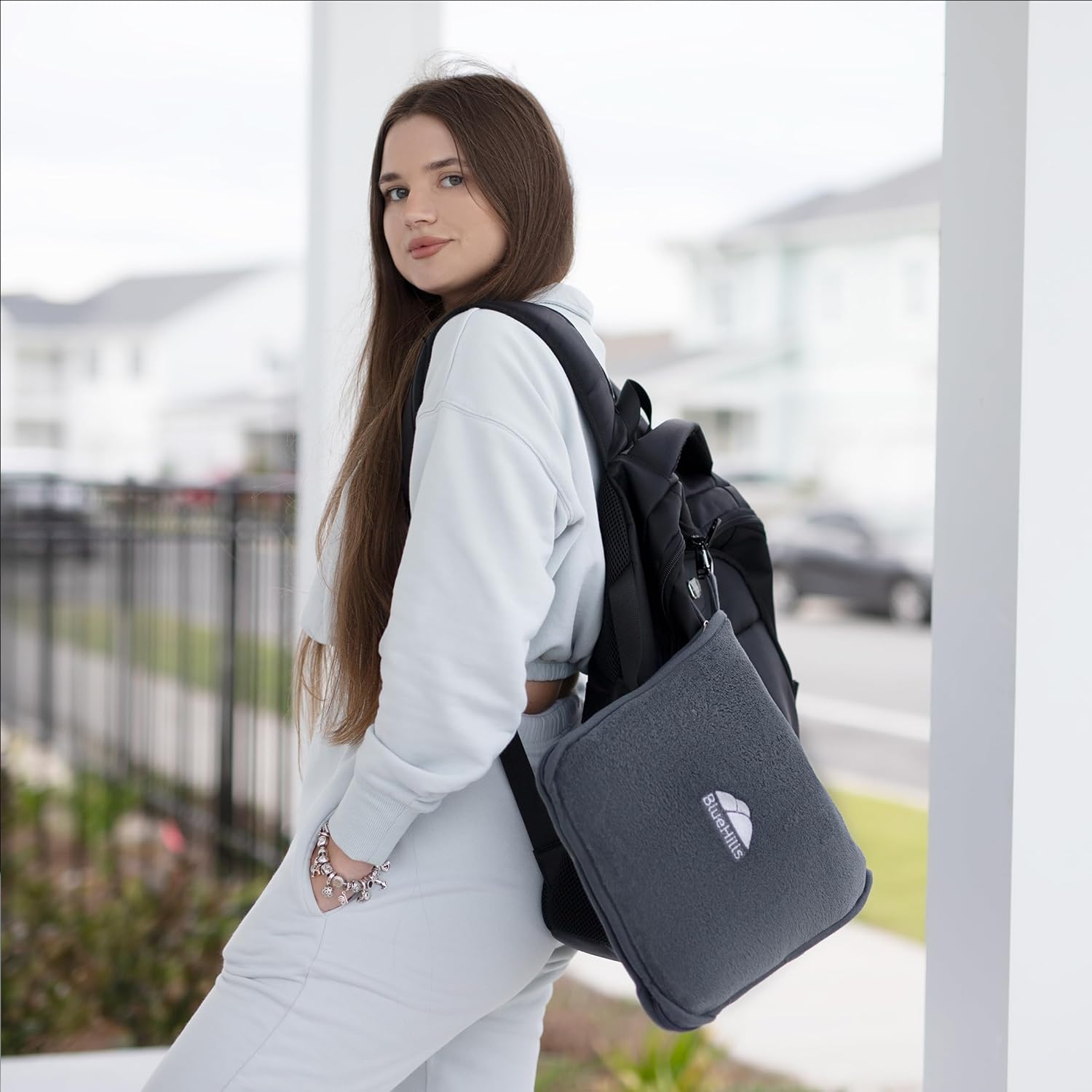 BlueHills Premium Soft Travel Blanket Pillow Airplane Flight Blanket Throw Bag Pillowcase Compact Large 2 in 1 Combo Warm Traveling Plane Essentials Portable Gifts Lightweight Grey Gray T007